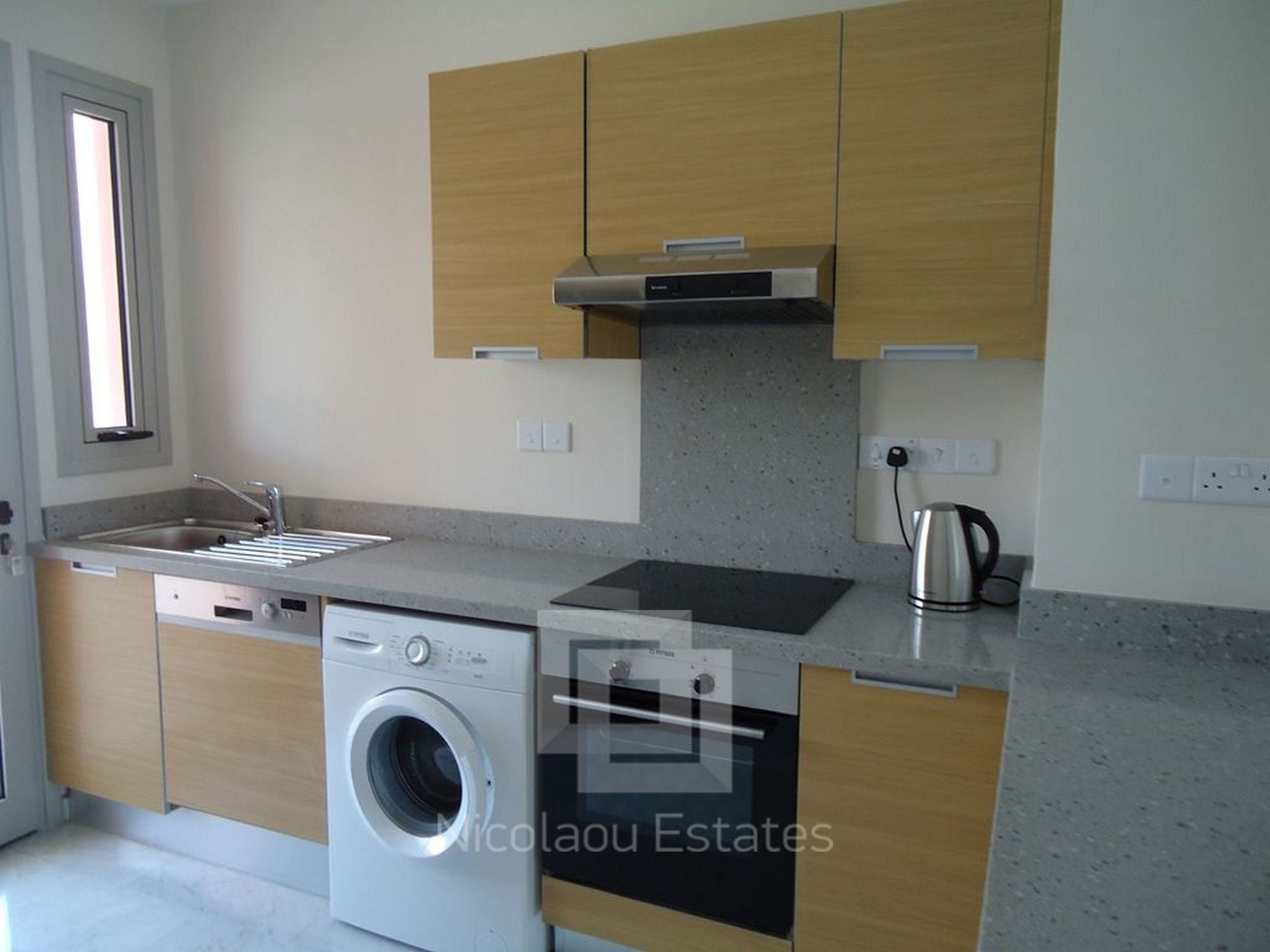 Features: built-in Italian kitchen with granite countertops, new appliances (2-chamber refrigerator, dishwasher, washing machine, an oven cooker, hob, extractor, kettle, TV LED), air conditioning in all rooms, marble floors in the living room, laminated flooring in the bedrooms, double glazed windows and shutters on the windows. The apartments have their own indoor car parking and storage.
