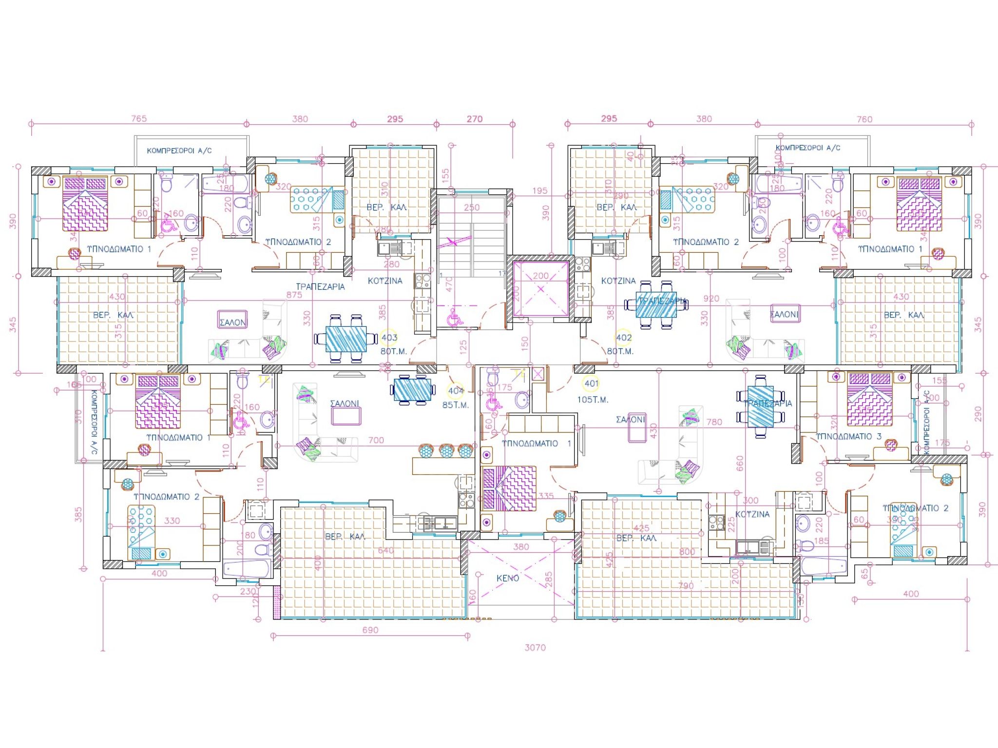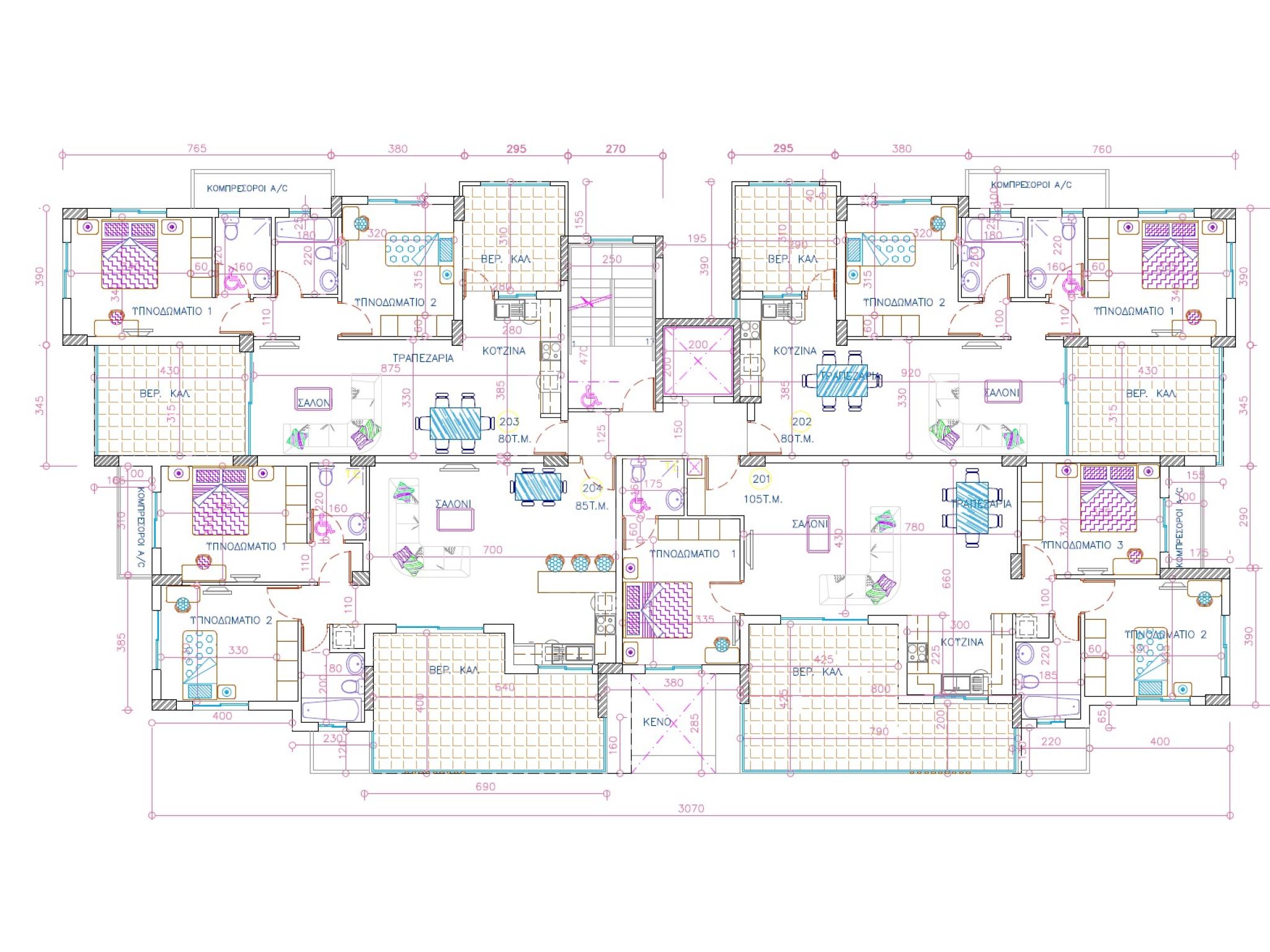 Τα διαμερίσματα είναι ενεργειακής απόδοσης (A ) και διαθέτουν ευρύχωρους εσωτερικούς χώρους με 2 έως 3 υπνοδωμάτια, έξυπνη διαρρύθμιση και μεγάλα μπαλκόνια.