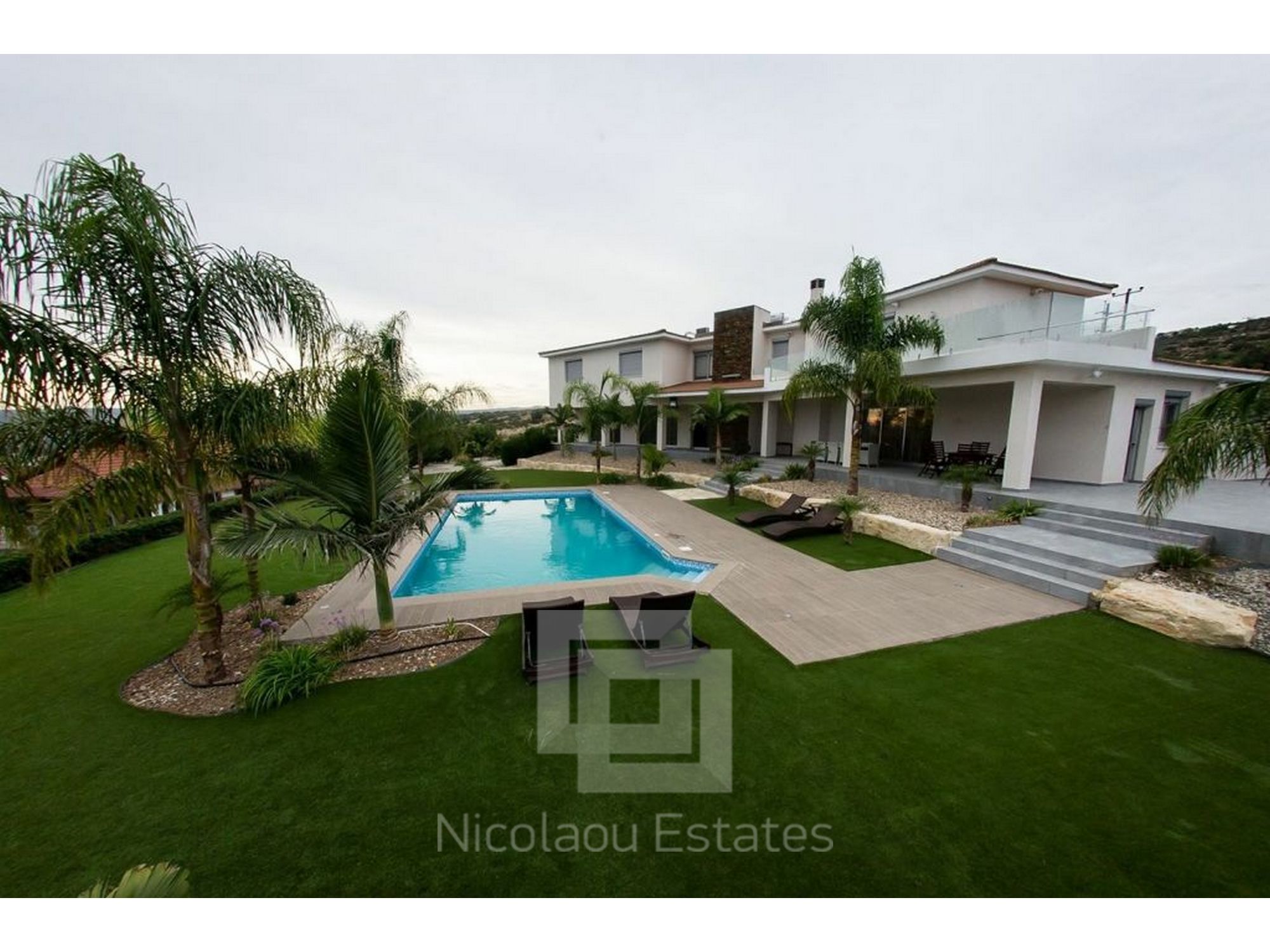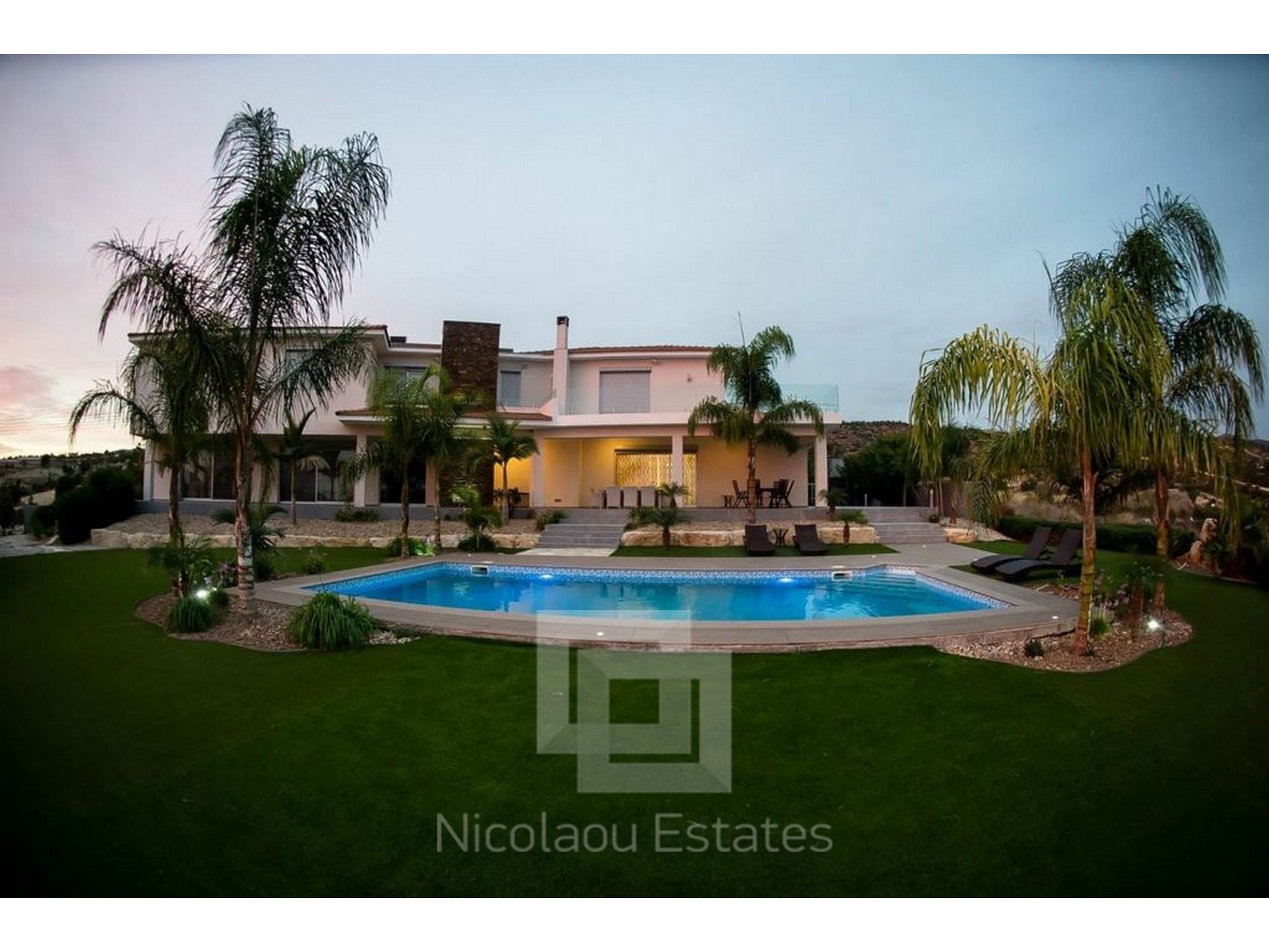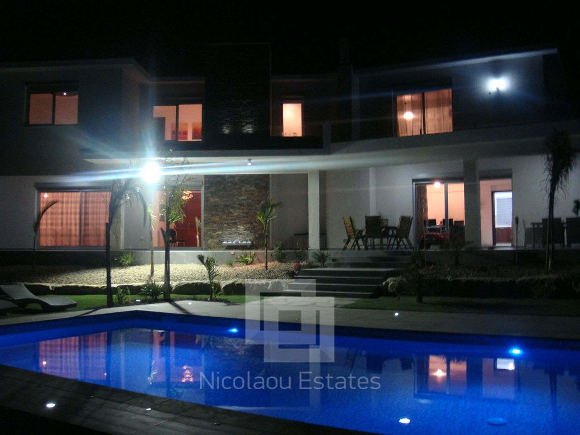 Fully furnished, Air - conditioning, 5 bathrooms, 5 bedrooms, punder floor heating , Plot 8000m2 with covered area 540m2. Swimming pool 5x10m2, kitchen with granite worktops. with double garage, electric gates. Also installation of an elevator is provided