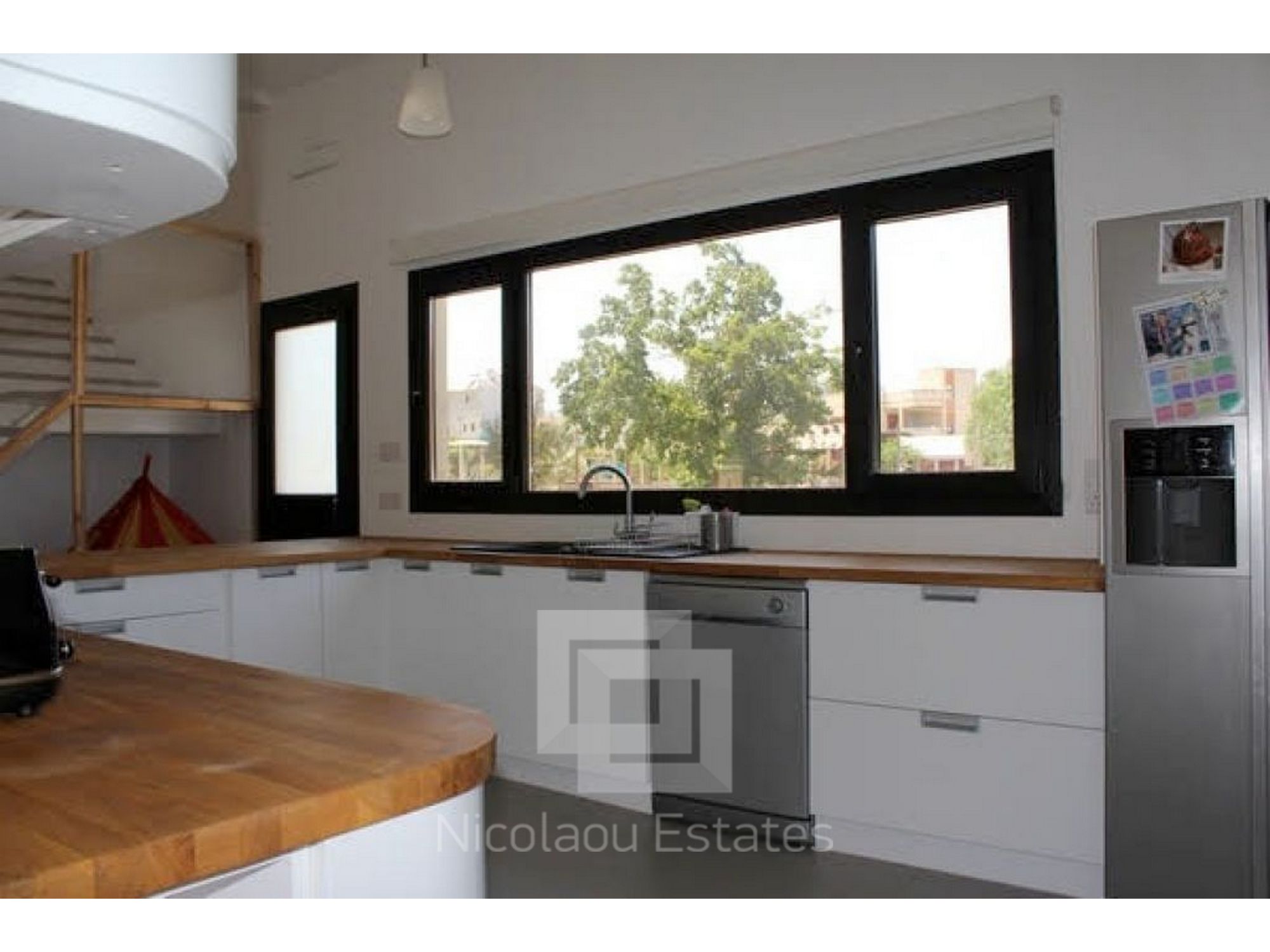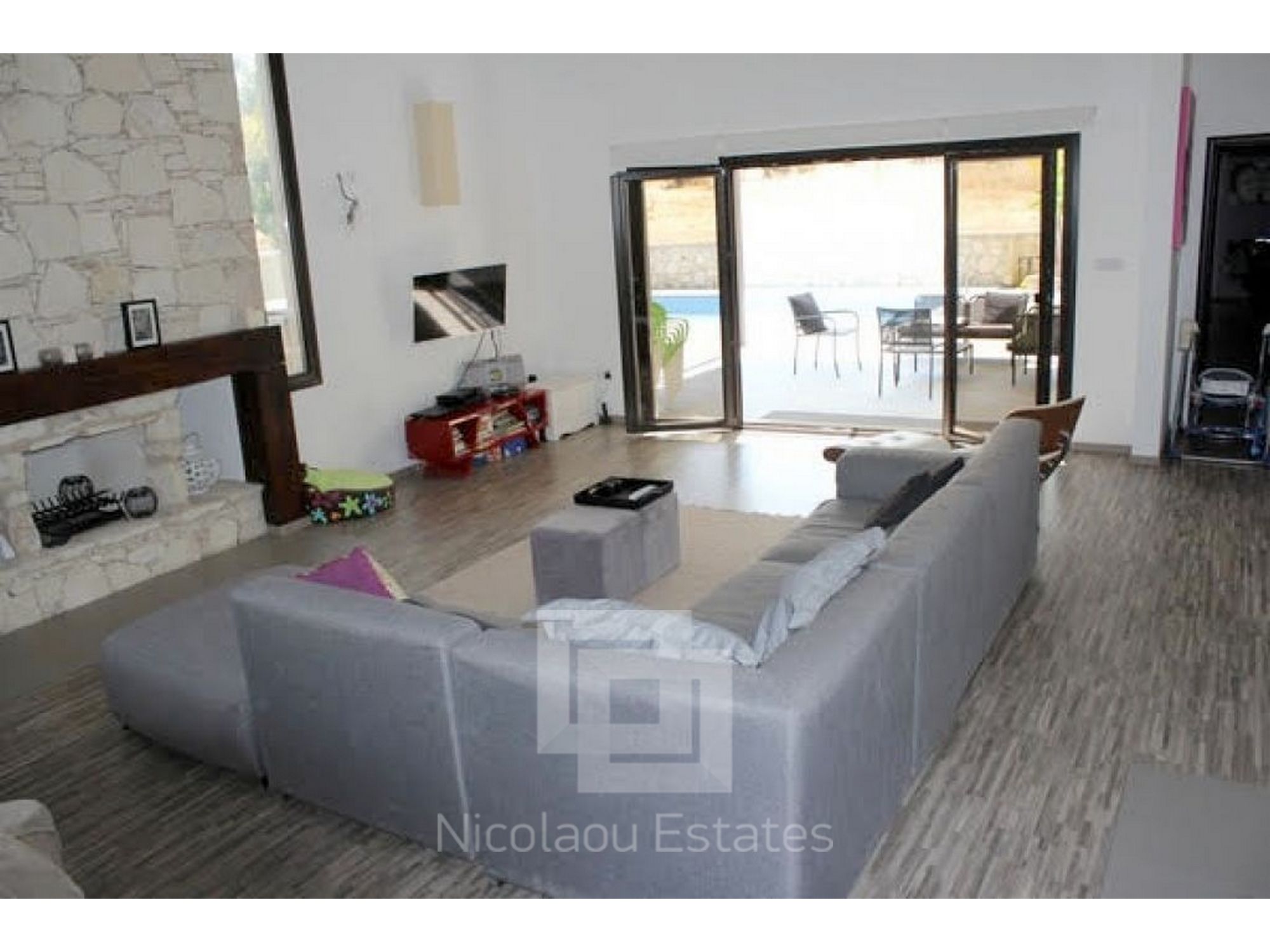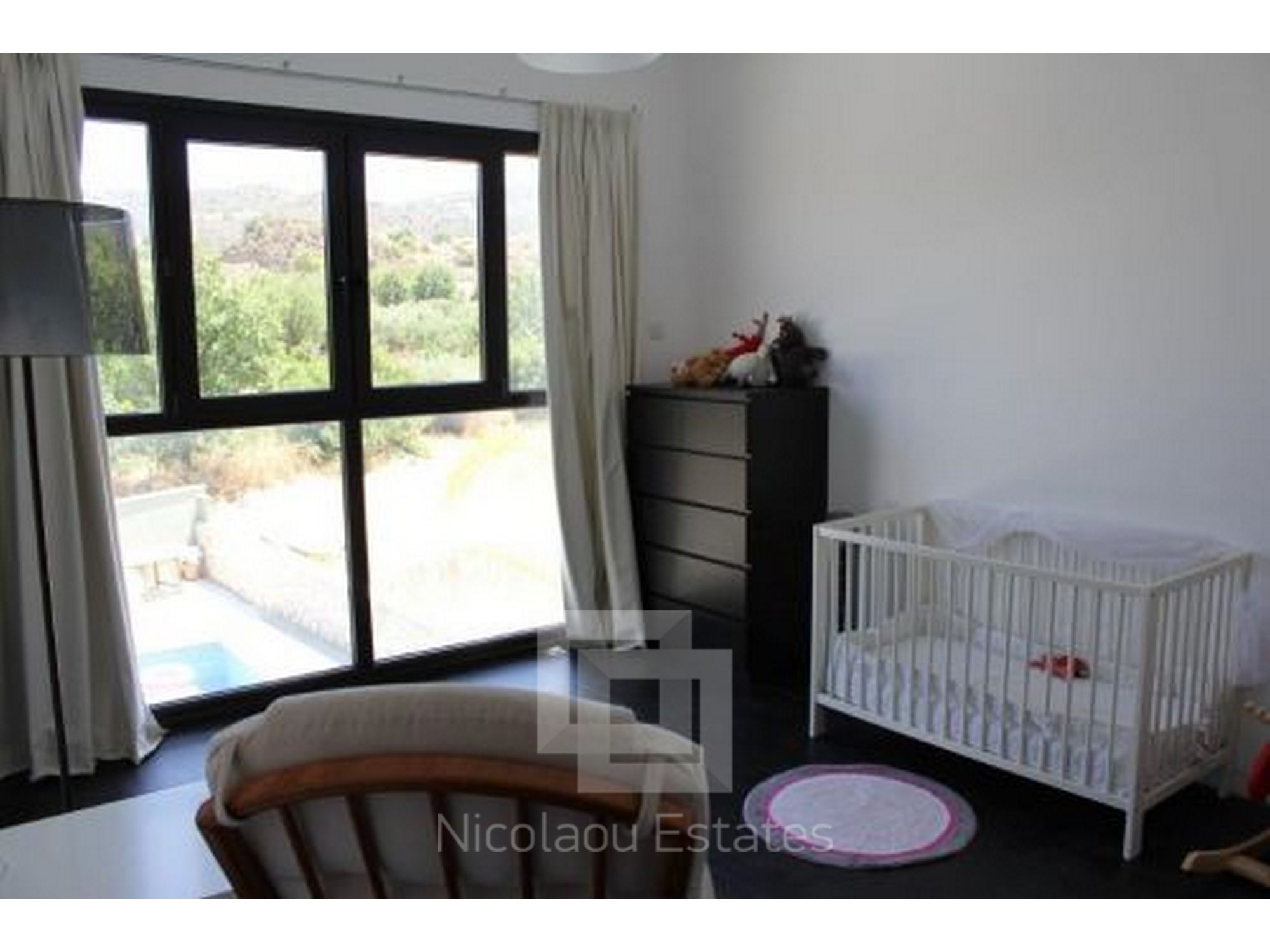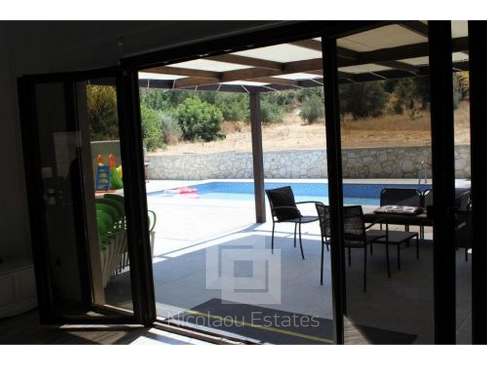 A beautiful, contemporary, modern designed house. Three double bedrooms with ensuite bathrooms, walk in wardrobe, guest WC, large spacious kitchen with all appliances, utility room and spacious lounge. Lots of unique design features. All rooms have AC and wireless internet. Has a great outdoor space for dining and an 8x4 metre swimming pool and shower. Great location with mountain views walking distance to 2 fantastic tavernas, a modern coffee shop, supermarket, park, 5 mins drive from St Raphael beach and beach cafes. Eco built house, cool in summer warm in winter low electricity bills on a large plot.