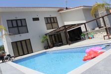A beautiful, contemporary, modern designed house. Three double bedrooms with ensuite bathrooms, walk in wardrobe, guest WC, large spacious kitchen with all appliances, utility room and spacious lounge. Lots of unique design features. All rooms have AC and wireless internet. Has a great outdoor space for dining and an 8x4 metre swimming pool and shower. Great location with mountain views walking distance to 2 fantastic tavernas, a modern coffee shop, supermarket, park, 5 mins drive from St Raphael beach and beach cafes. Eco built house, cool in summer warm in winter low electricity bills on a large plot.