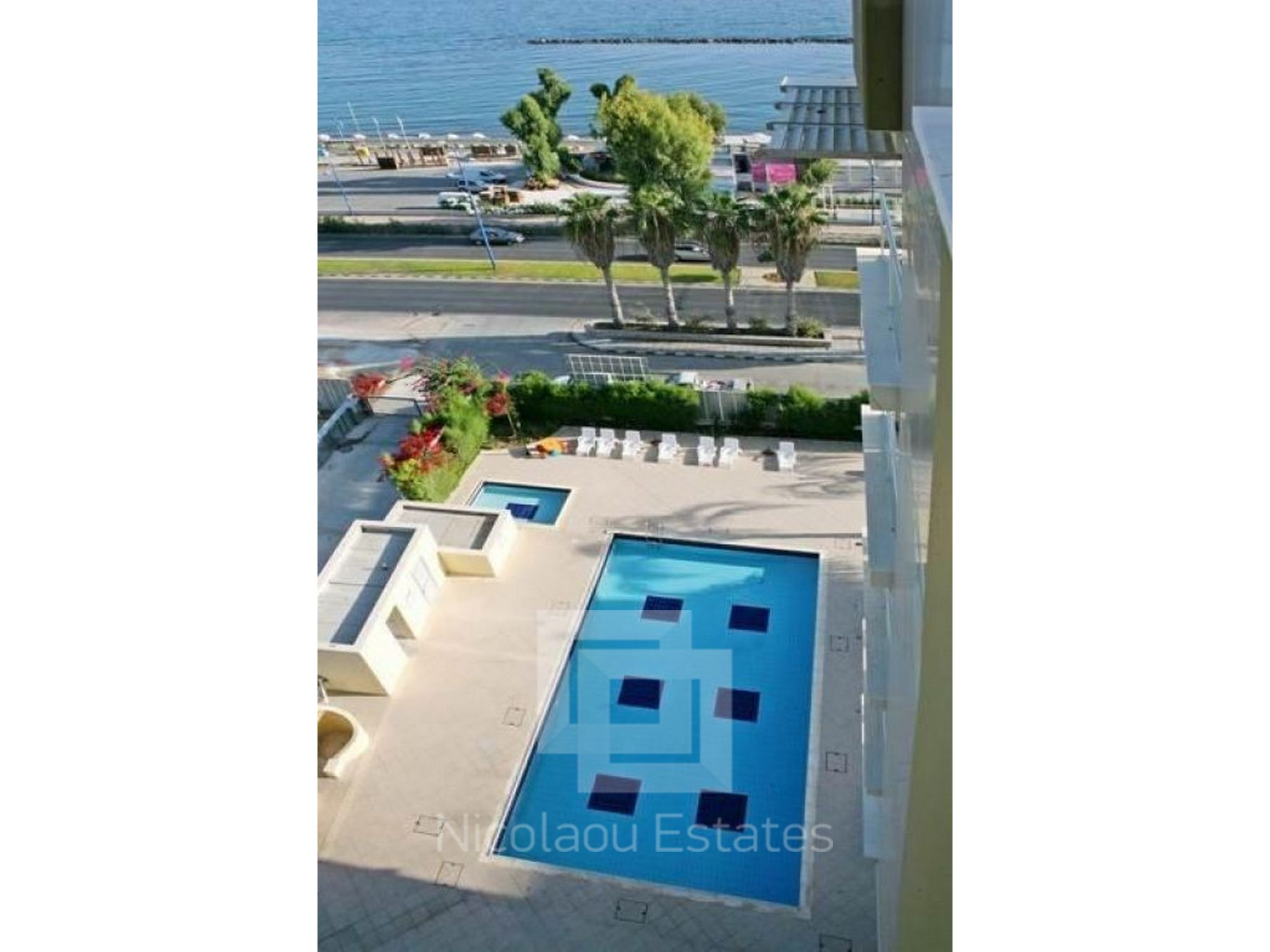 This is a Luxury Residence in with private communal swimming pool, tennis court and gym facilities. It is exactly on the beach in Limassol tourist area, walking distance to restaurants and coffee shops.