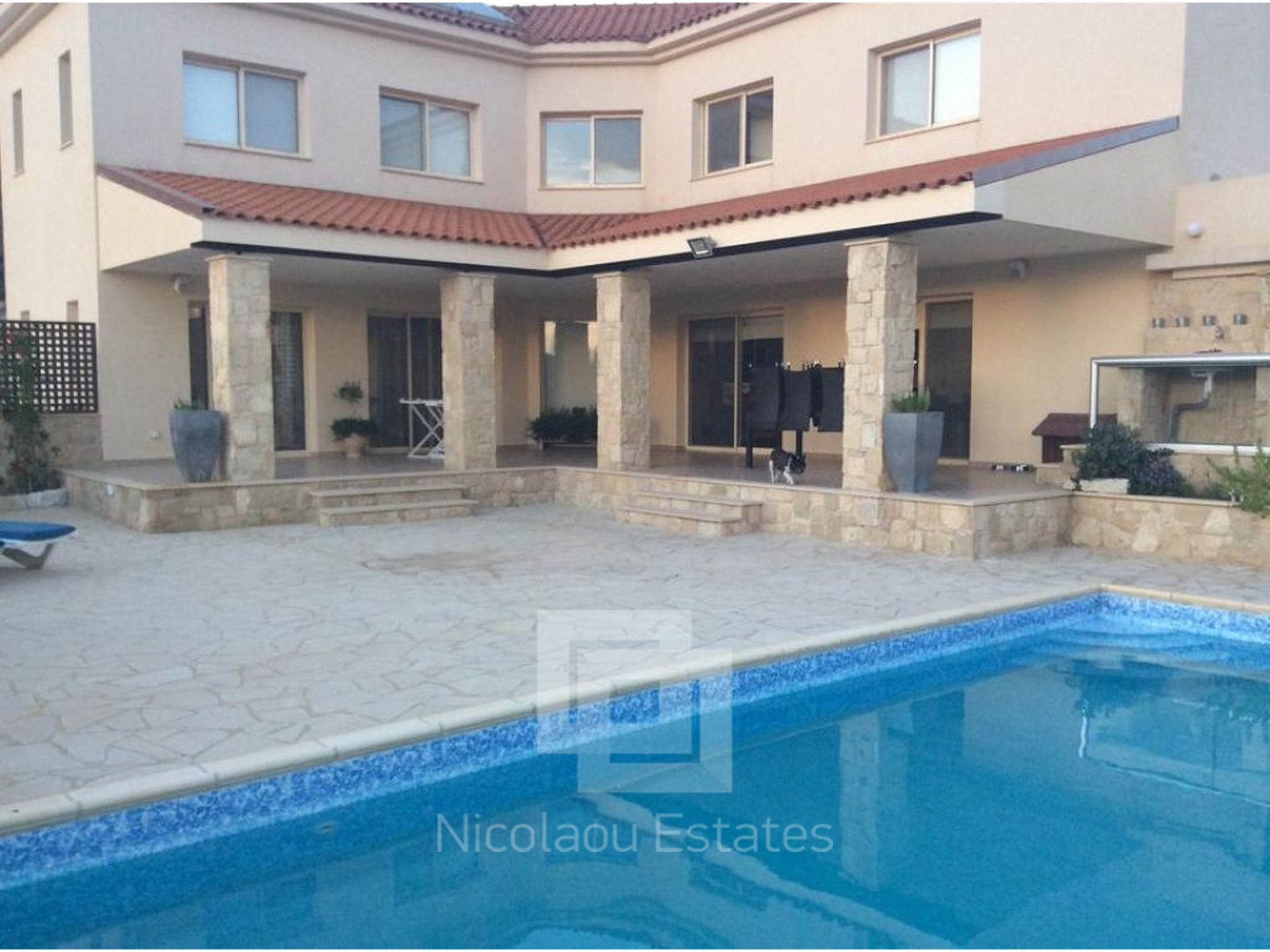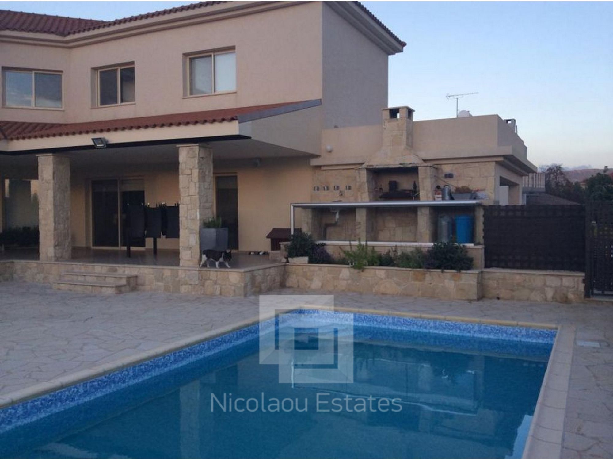 Super deluxe custom built villa for sale or rent. 3 bedroom fully furnished property in Palodia within easy access to all amenities and Heritage school. Parquet in all bedrooms with fitted super large wardrobes. 220mē internal covered area, with 100mē covered verandas with spot lights and sound system. 550mē plot size Swimming pool, Comfortable large sitting/dining/tv area, open plan fully equipped kitchen with breakfast/ diner and utility/kitchenette, Guest wc, 3 bedrooms on upper level, master en suite, main bathroom, double glazed windows with fly screens. Provision for c/h. Fully a/c throughout, covered parking and 4 uncovered. The property has its own bore hole, BBQ are with outside washbasin, pressurized water system Views over the surrounding areas.