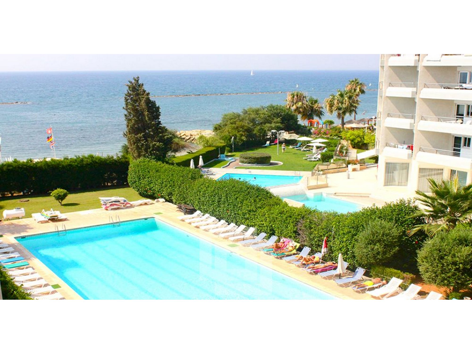 The complex consists of four Blocks of apartments and offers very large communal pools, one adult and one children pool and garden, as well as the beach.