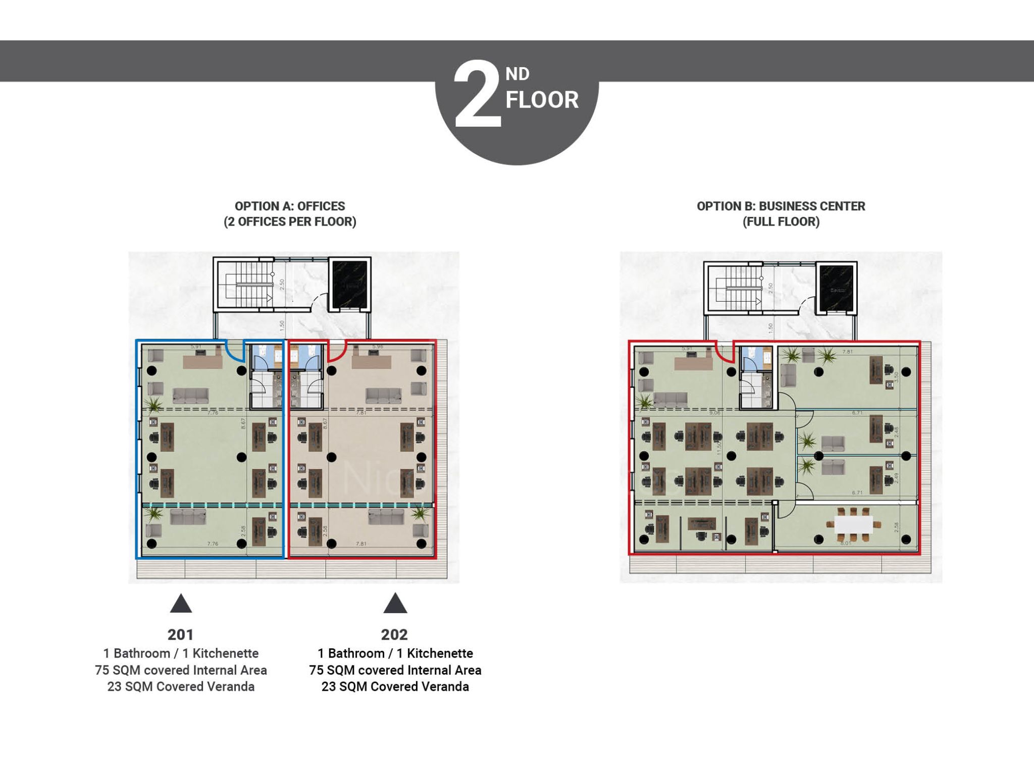 Το έργο περιλαμβάνει τόσο γραφεία όσο και καταστήματα, ιδανικά για επενδυτικούς σκοπούς.