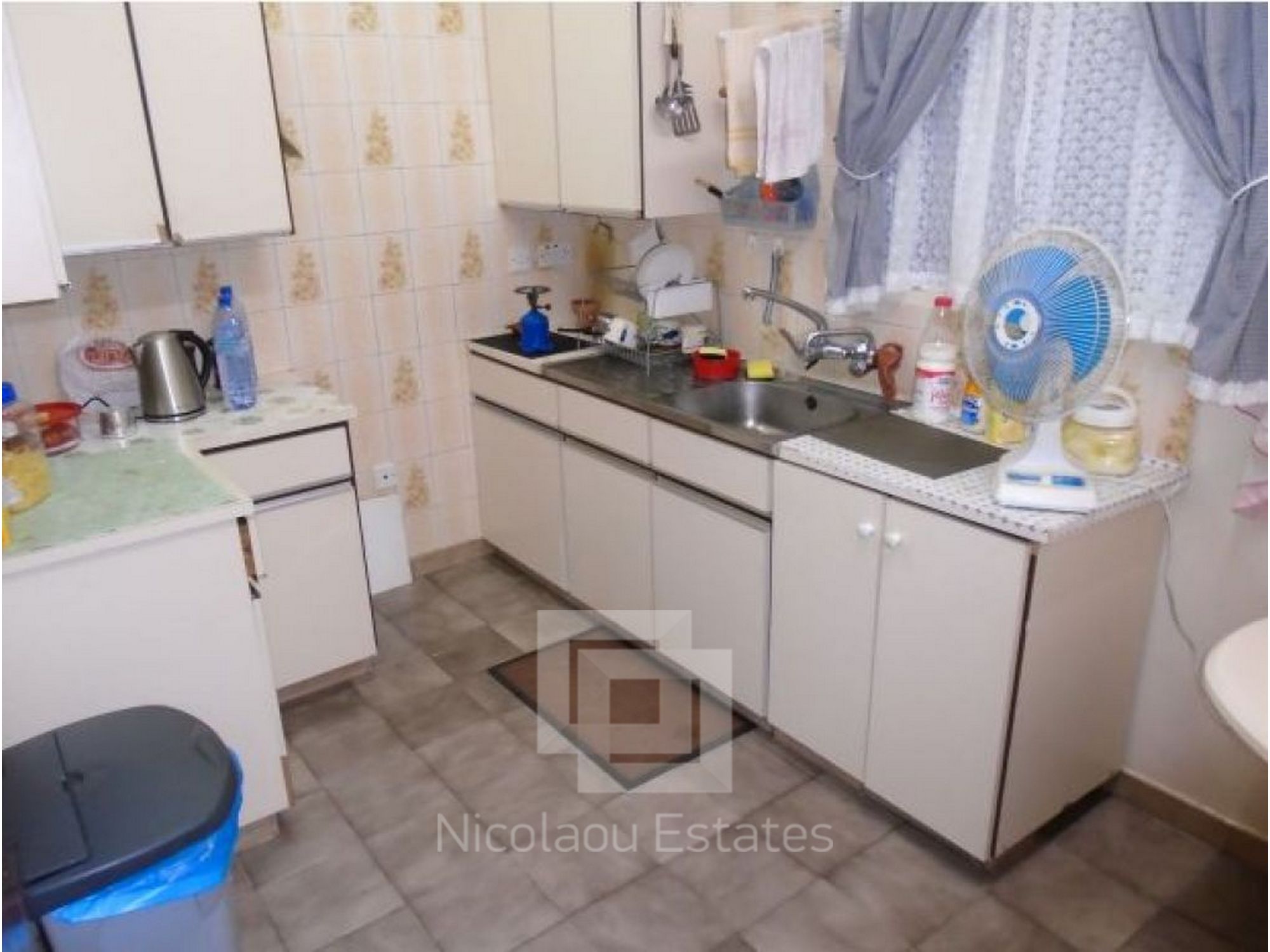 Very spacious with air conditioning but in need of some upgrading. Spacious living room, separate kitchen, guest toilet, 3 double bedrooms and 2 bathrooms, veranda, parking space.