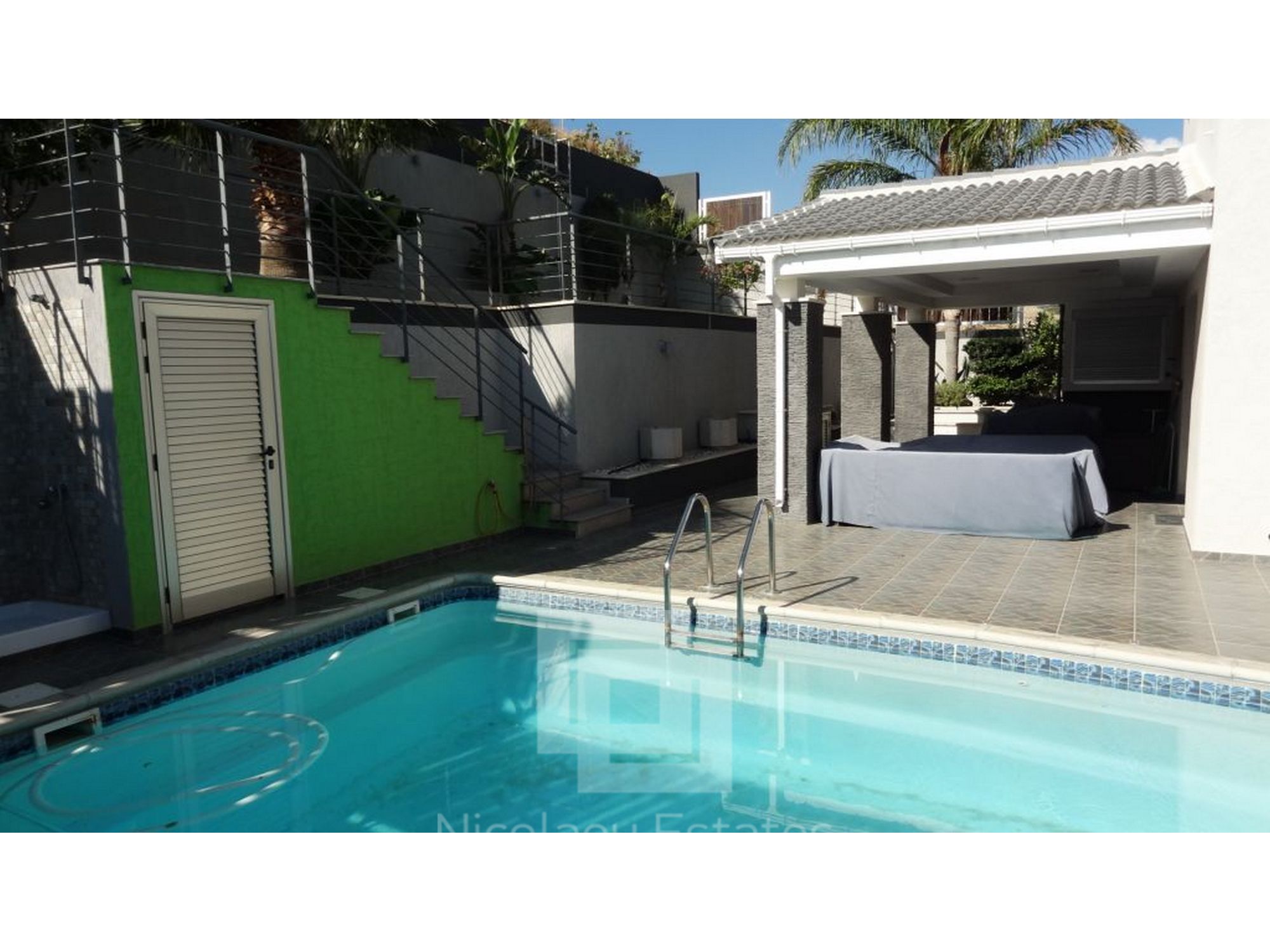 There is a fabulous 10x3,5m swimming pool which works on a salt chlorinator system. Parking for another 3 cars and electric gates.