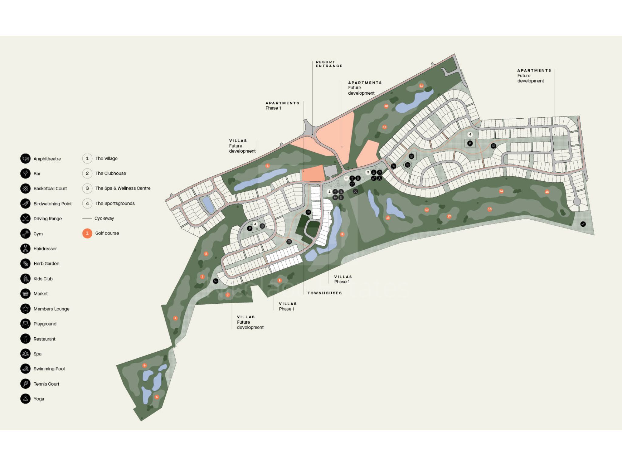 To be developed in over 1.4 million square metres, the resort will feature an 18-hole championship golf course with a state-of-the-art Clubhouse, a village square with shops, a wide range of restaurants, cafes, bars and a wine bistro, with a wellness centre with an outdoor pool, spa treatment facilities, fitness area, yoga and meditation lawns. The project will offer residential properties comprising of 500 villas and 250 apartments with total buildable area of only 150,000 square metres, allowing for extensive green areas that will include over 10 kilometres path and cycle ways, children’s playgrounds, an open amphitheatre, tennis and basketball courts etc.