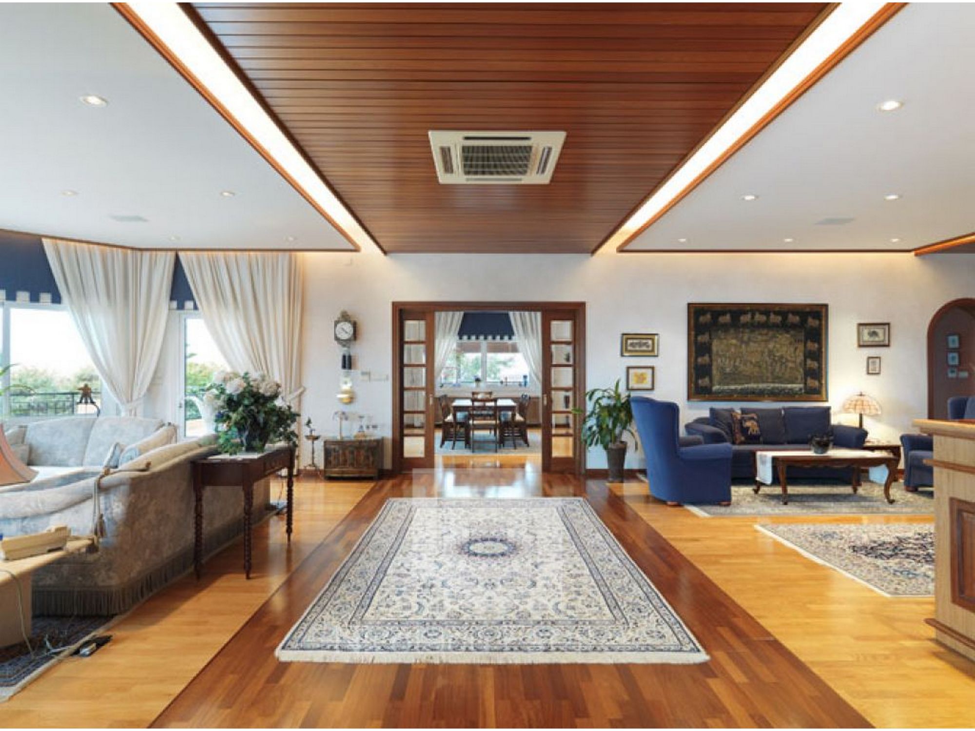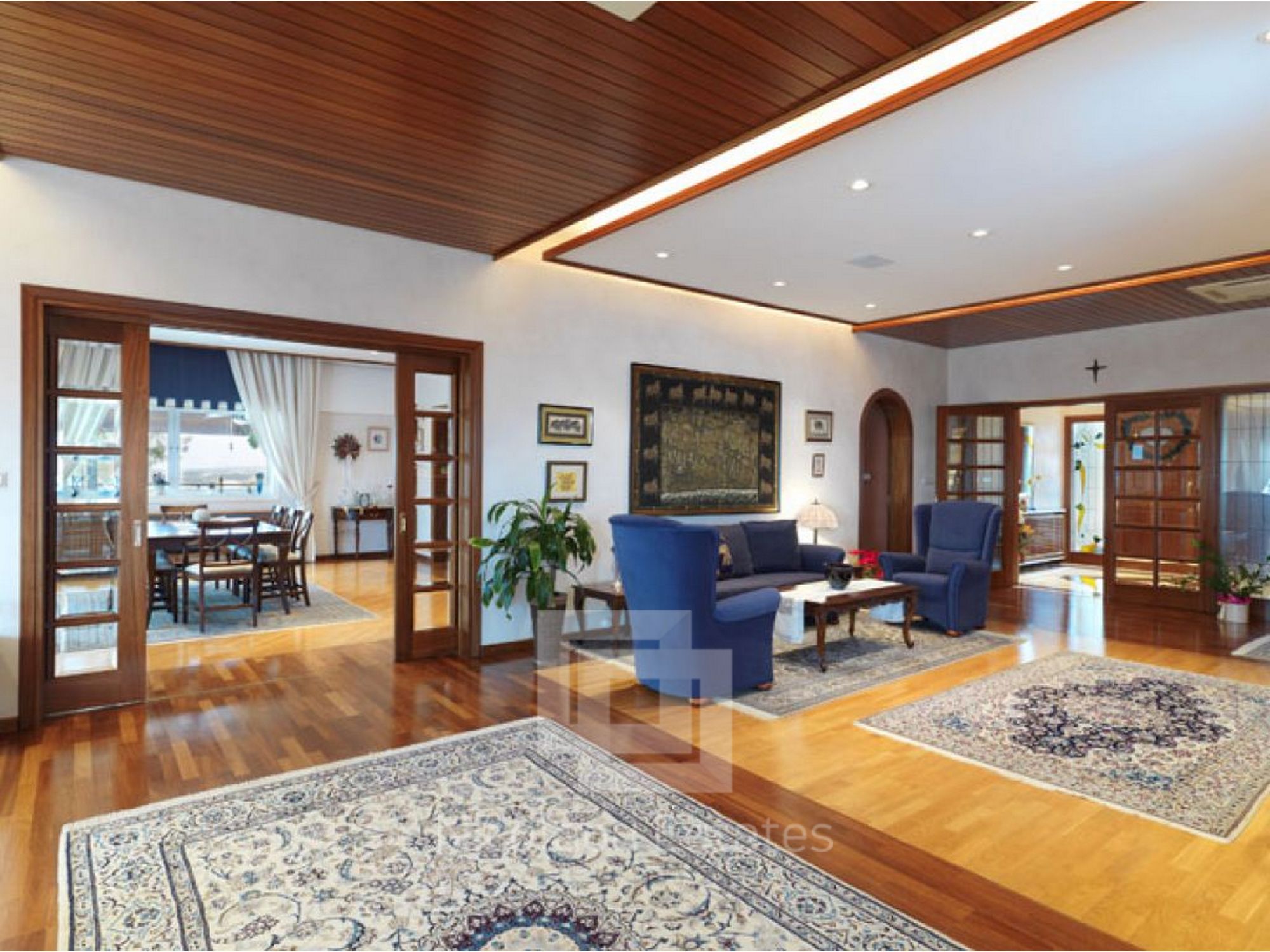 The house consists of a large basement area, ground floor and first floor. It has a gym area, garage for four cars plus plenty of more external parking space, 5 bedrooms (of which one is a maid's room), VRV air condition system, central heating, fire place and many more.