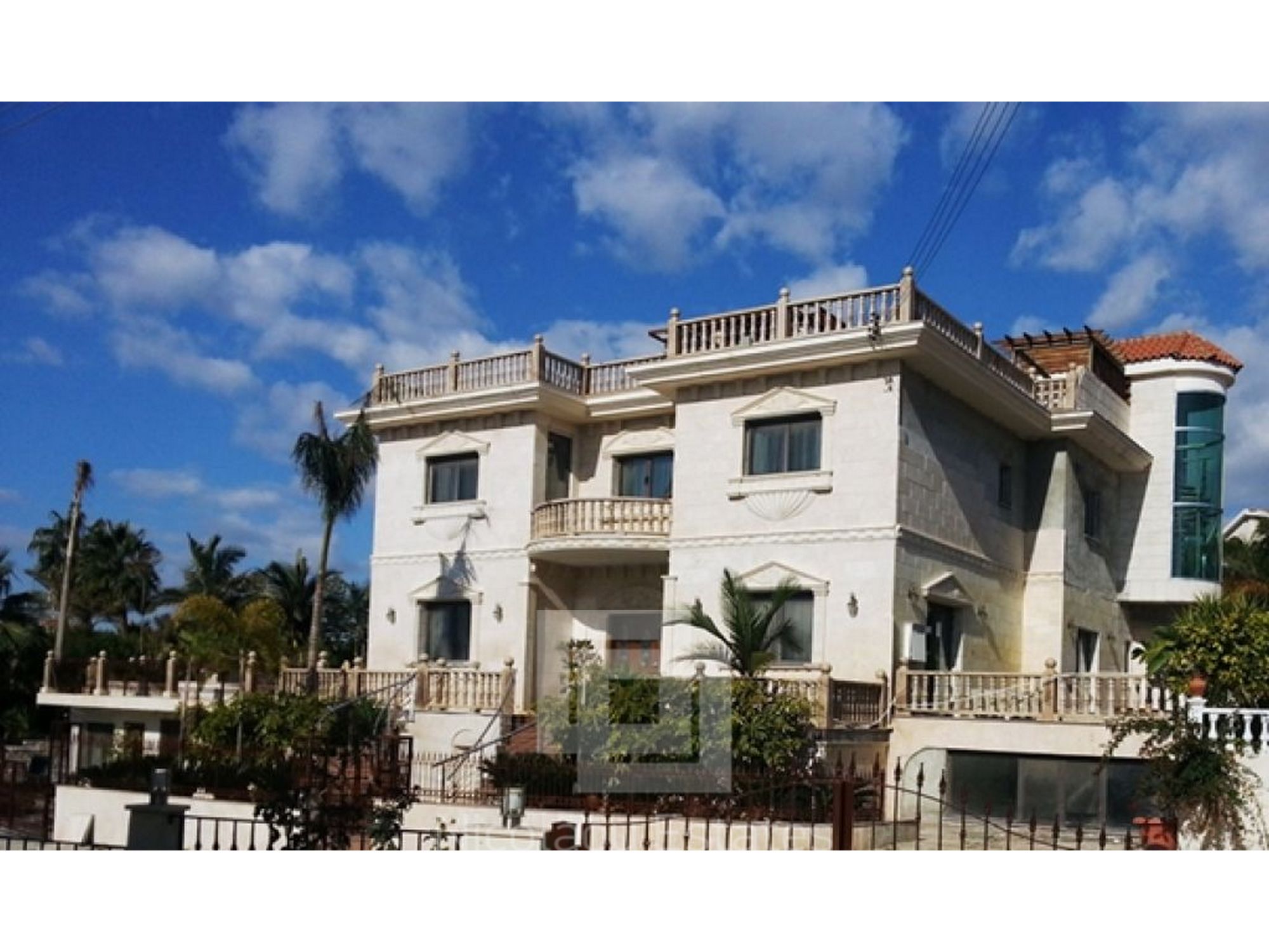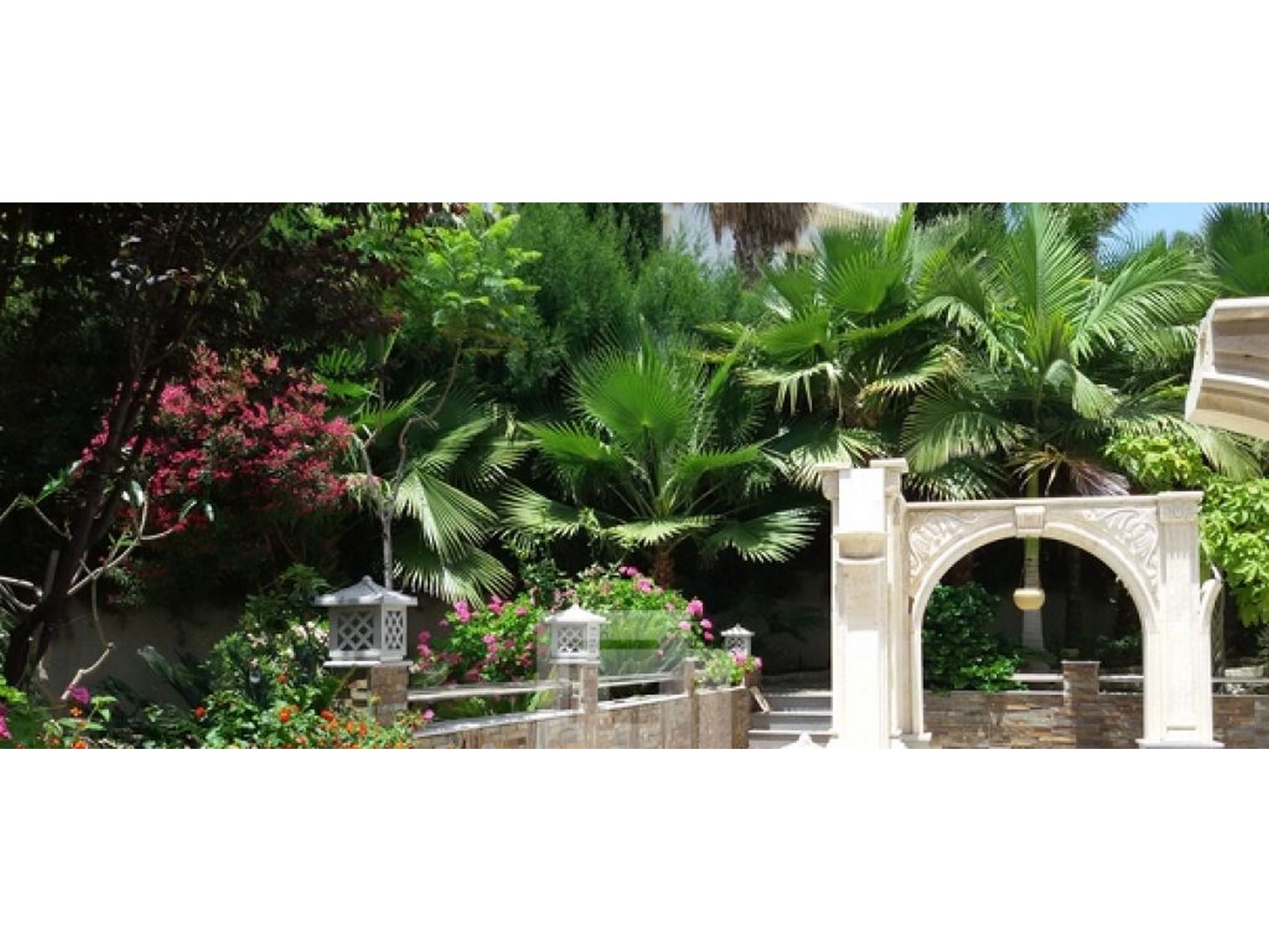 4 Cars covered Garage (with granite floor plans and granite), Garden Features (200 palm trees beyond many of 6m height, grass, flowers)