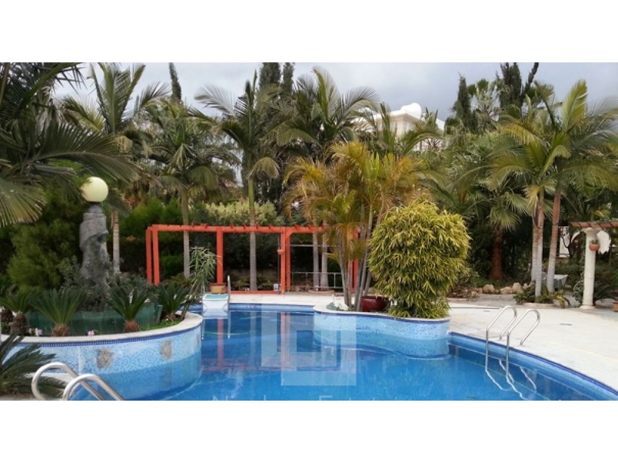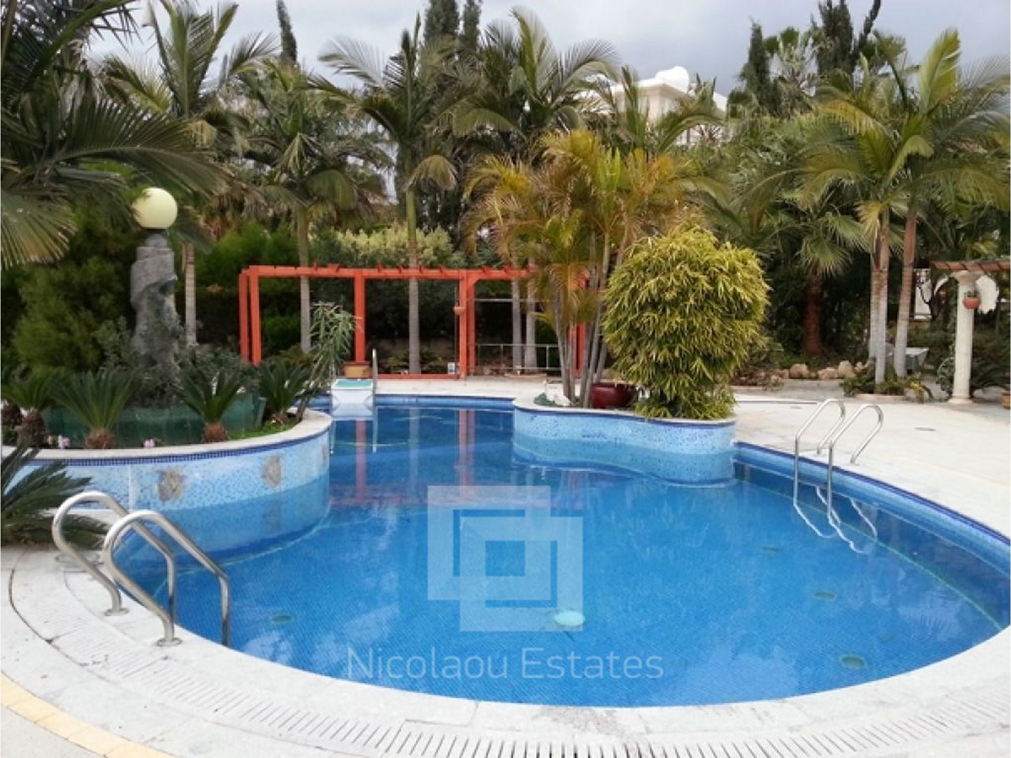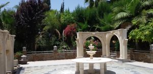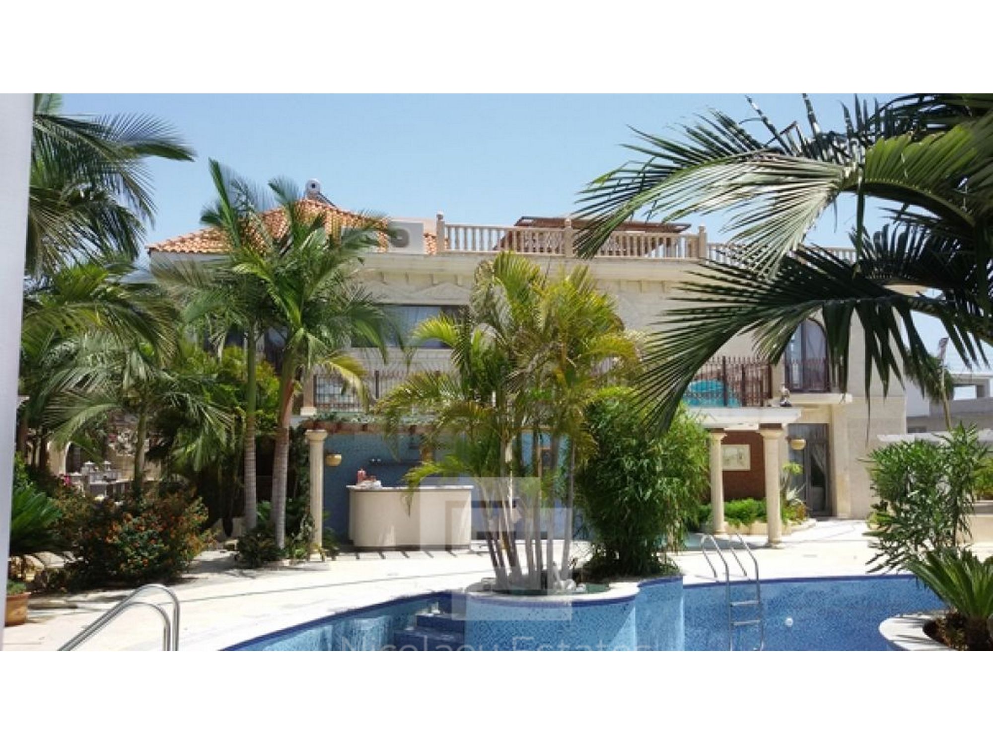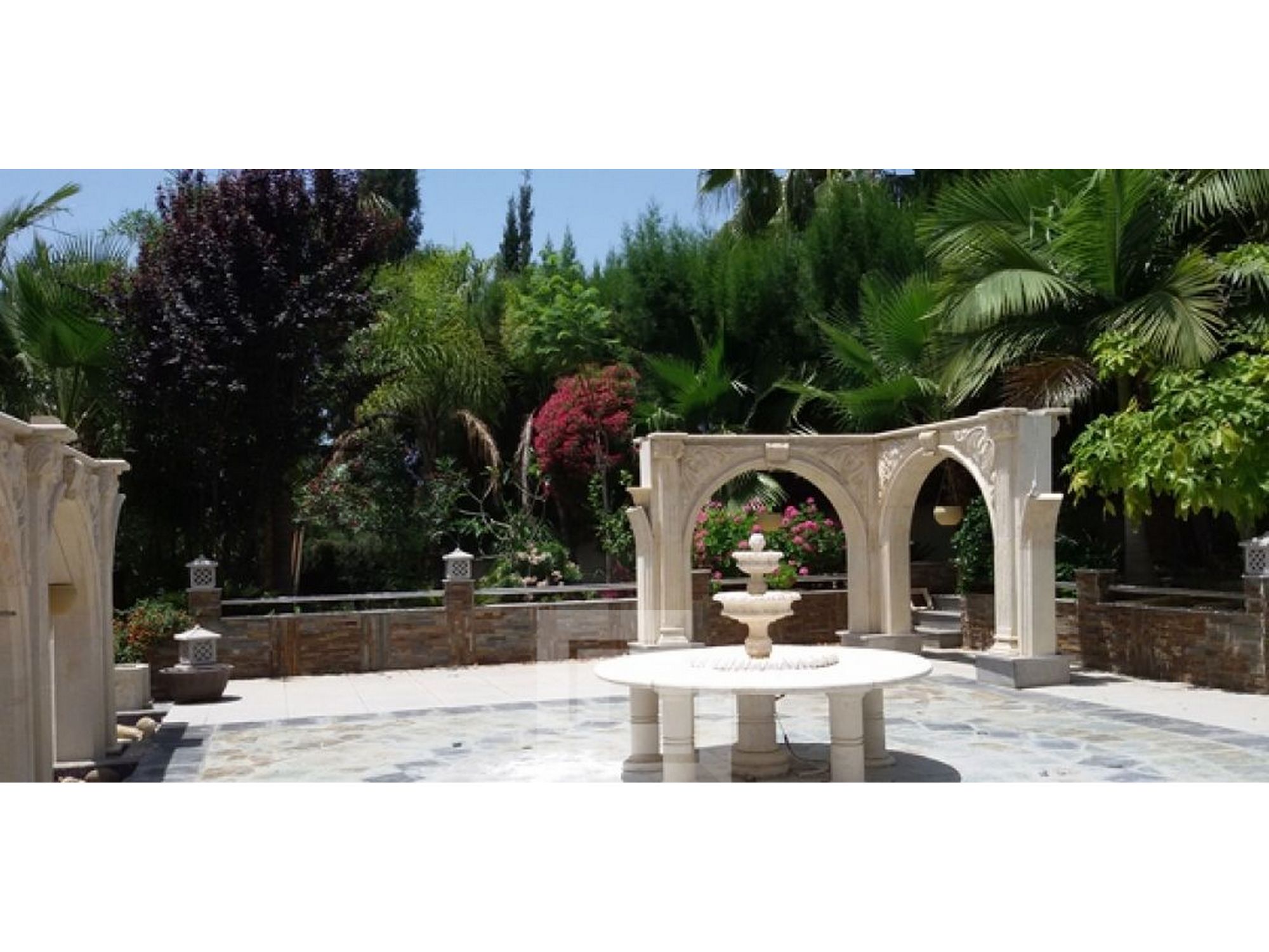 Pool bar (outdoor pergola with stone shelves lined with marble mosaics) Statues, Fountains (fountains, statues of marble)