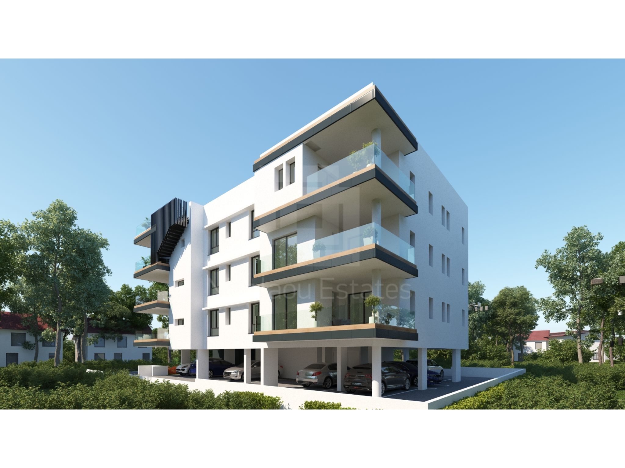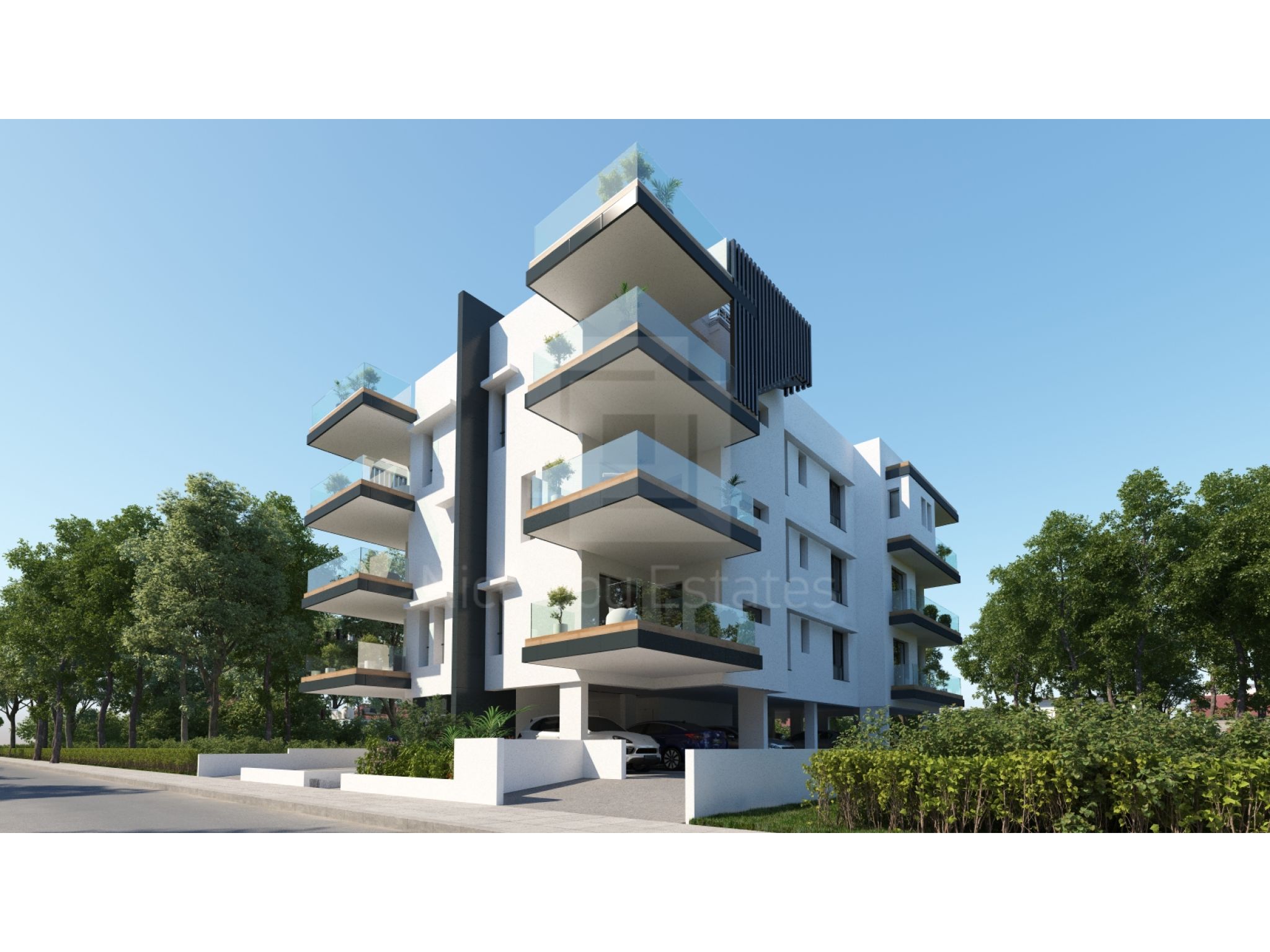 The modern design of the exterior and internal of the building makes excellent use of features like unique glass balconies and smart design layout of living areas designed to offer optional space, privacy and also views of the prestigious neighborhood.