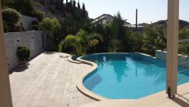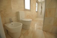 Also the villa has special thermal and sound isolation, thermal windows and sliding doors, electrical shutters, under floor electrical central heating, air-conditions inventors in every room class AA , solar and pressure system with electrical boiler too, pipe in pipe system, high quality sanitary wear, solid wooden wardrobes, marble floors on ground and basement level, laminate -parquet style of floors in all bedrooms, Italian kitchen, false sealing with hidden light, light dimmers, Jacuzzi with shower tiled for 6 people, sauna, small cellar, garage with electrical gate, overflow swimming pool and beautiful mature garden.