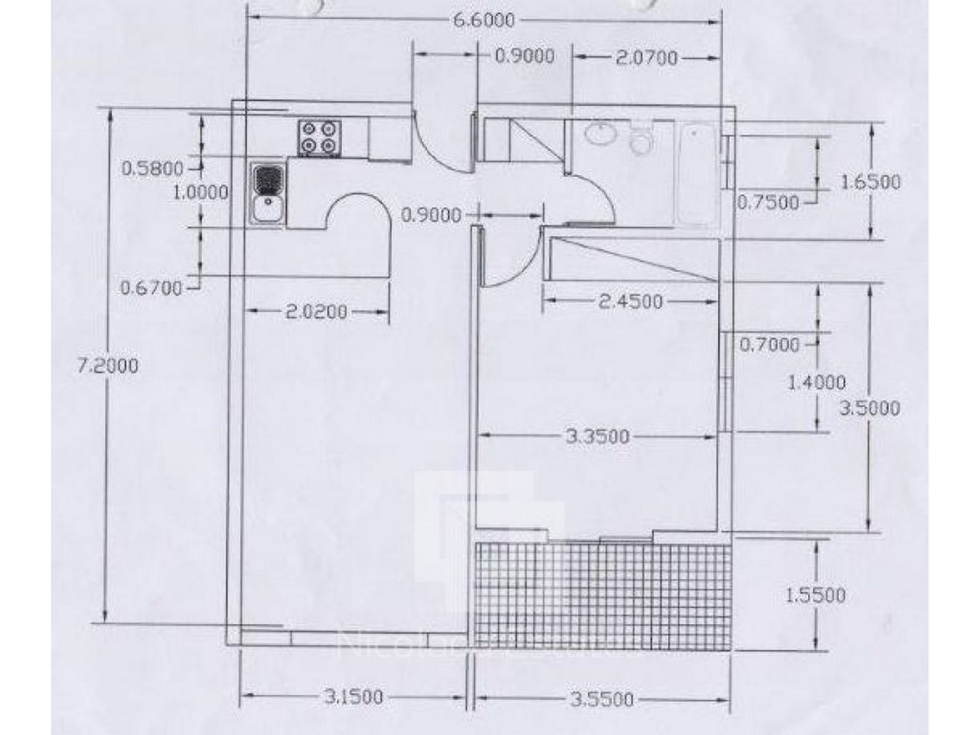 Consists of open kitchen and living room, bedroom, bathroom.