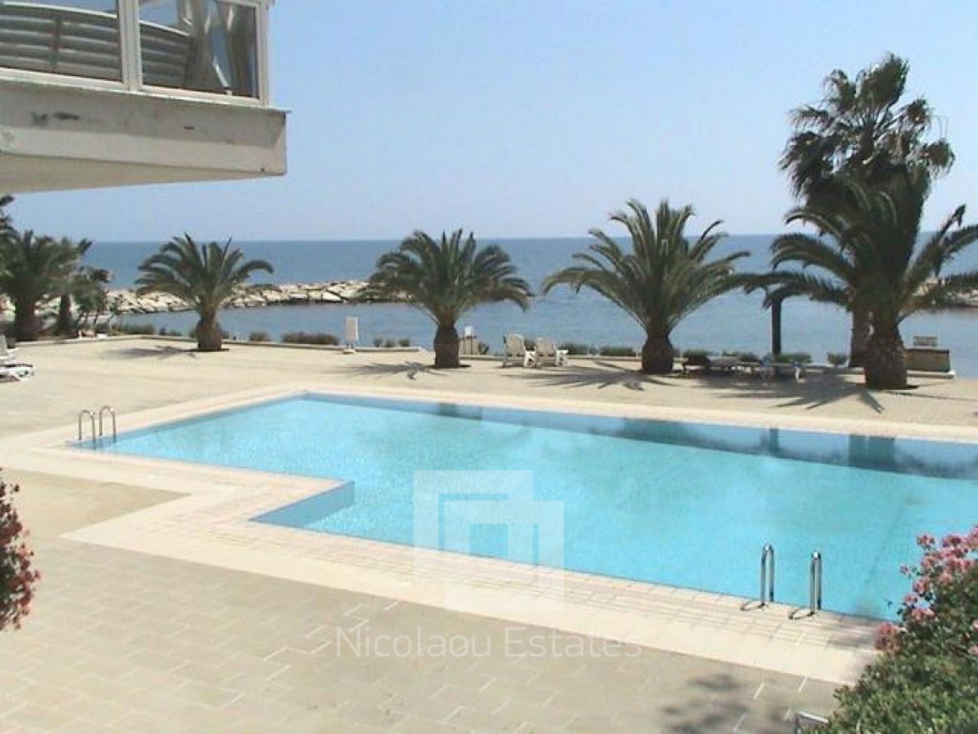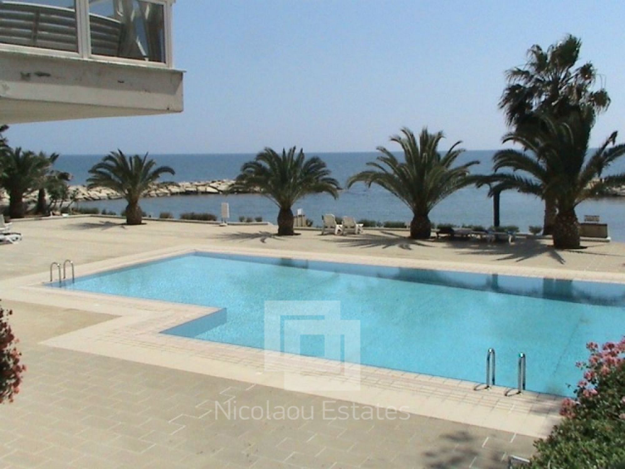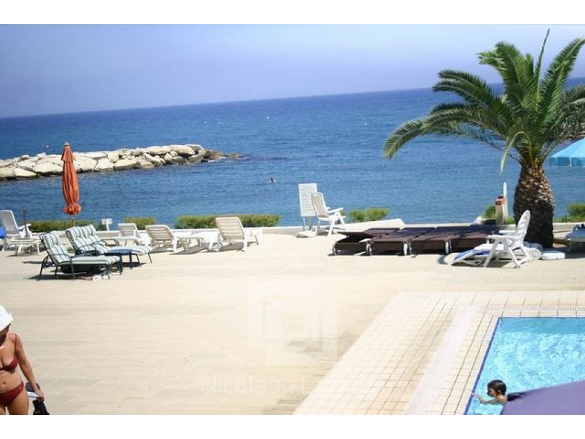 The communal swimming pool is very big and is located 5 meters from the shore.