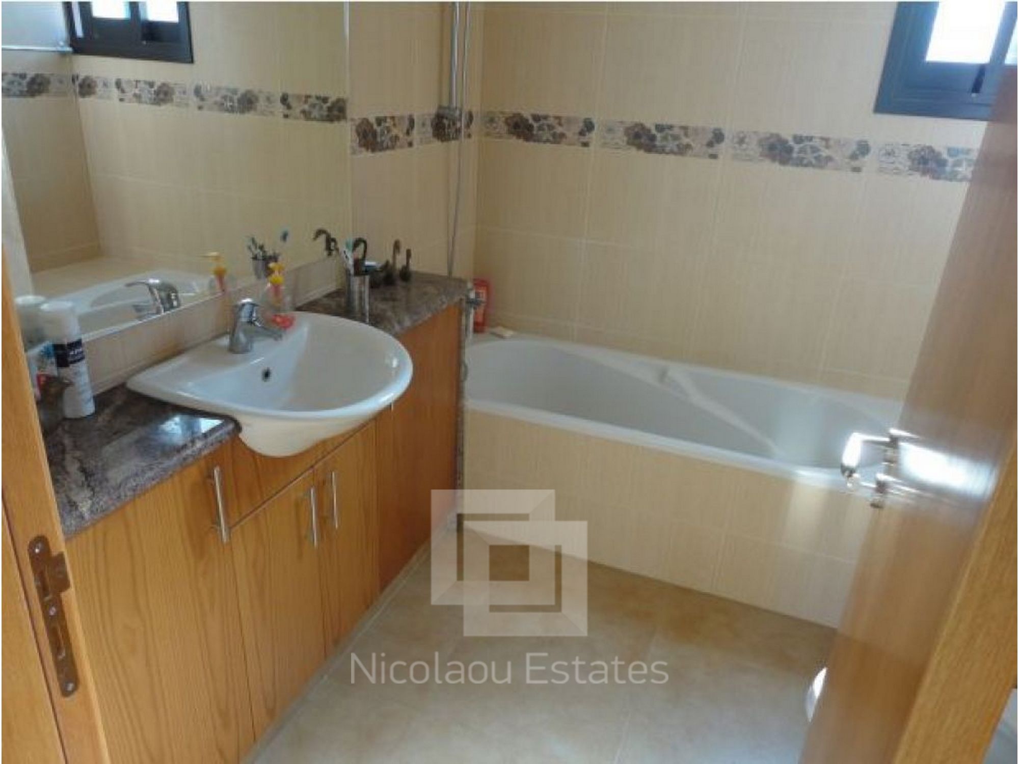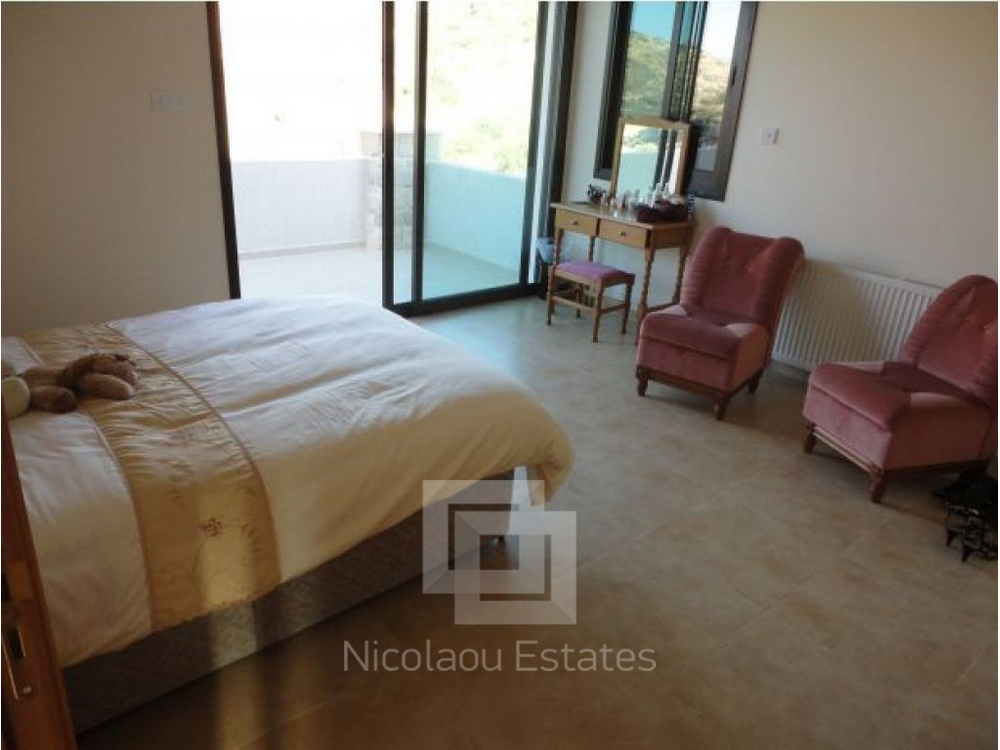 Upstairs are 3 double bedrooms, 2 having access to wide veranda and a family bathroom. Master bedroom has ensuite with hydromassage shower.