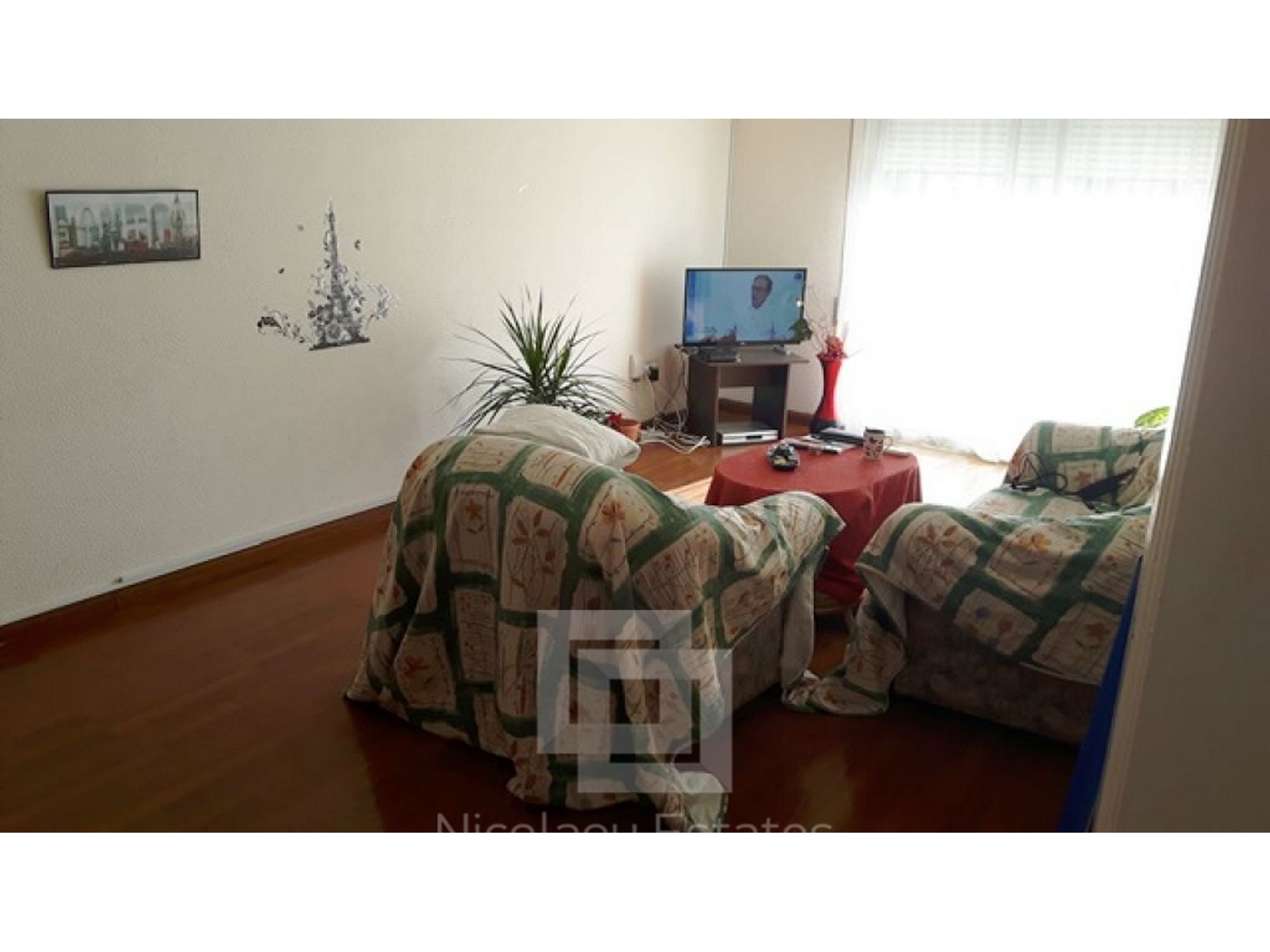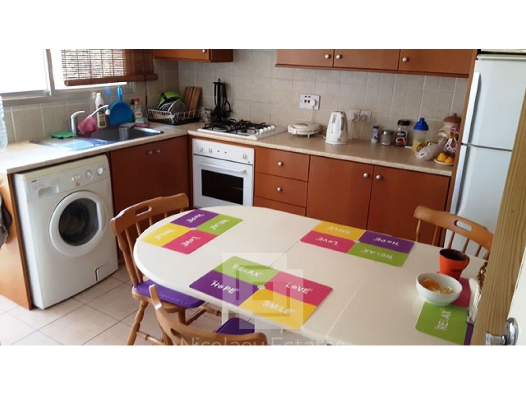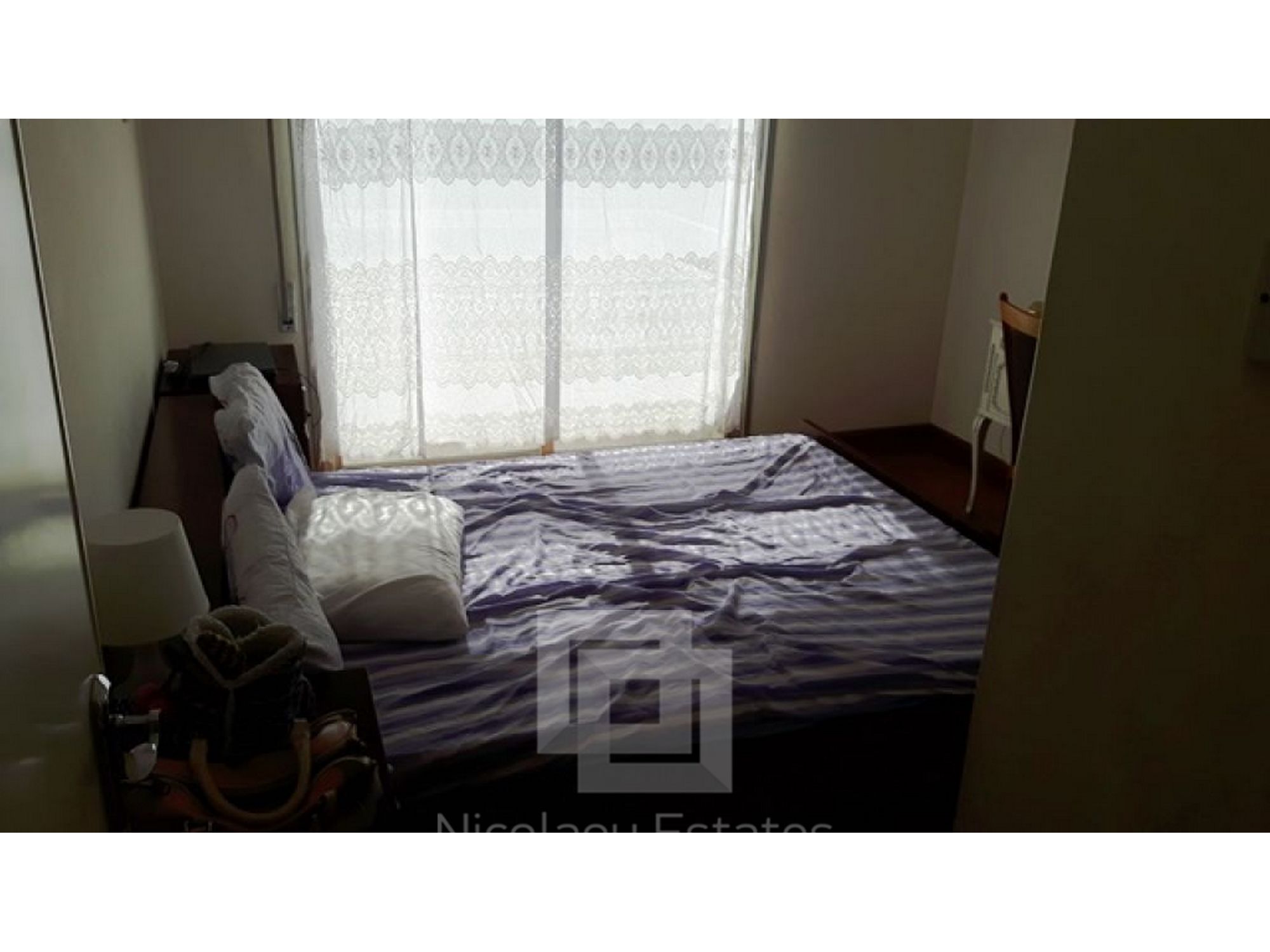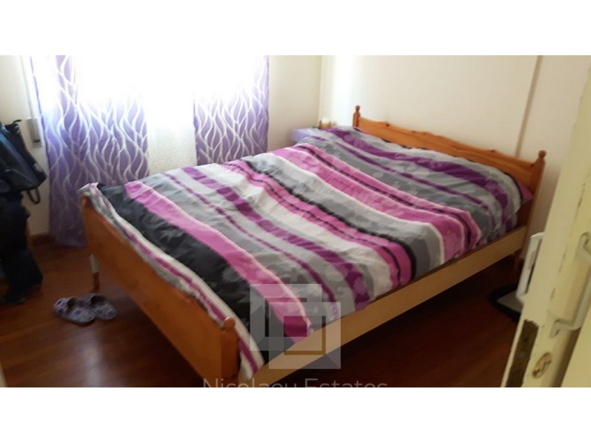 This is a resale two bedroom apartment in Neapolis. It consists of a separate kitchen, spacious living room, main bathroom, two spacious bedrooms, and two small balconies. The covered area is 90m2. The apartment is in very good condition and is sold furnished with A/C units, appliances, curtains, shutters, and one covered parking. There are ready title deeds. The price is ?135,000.