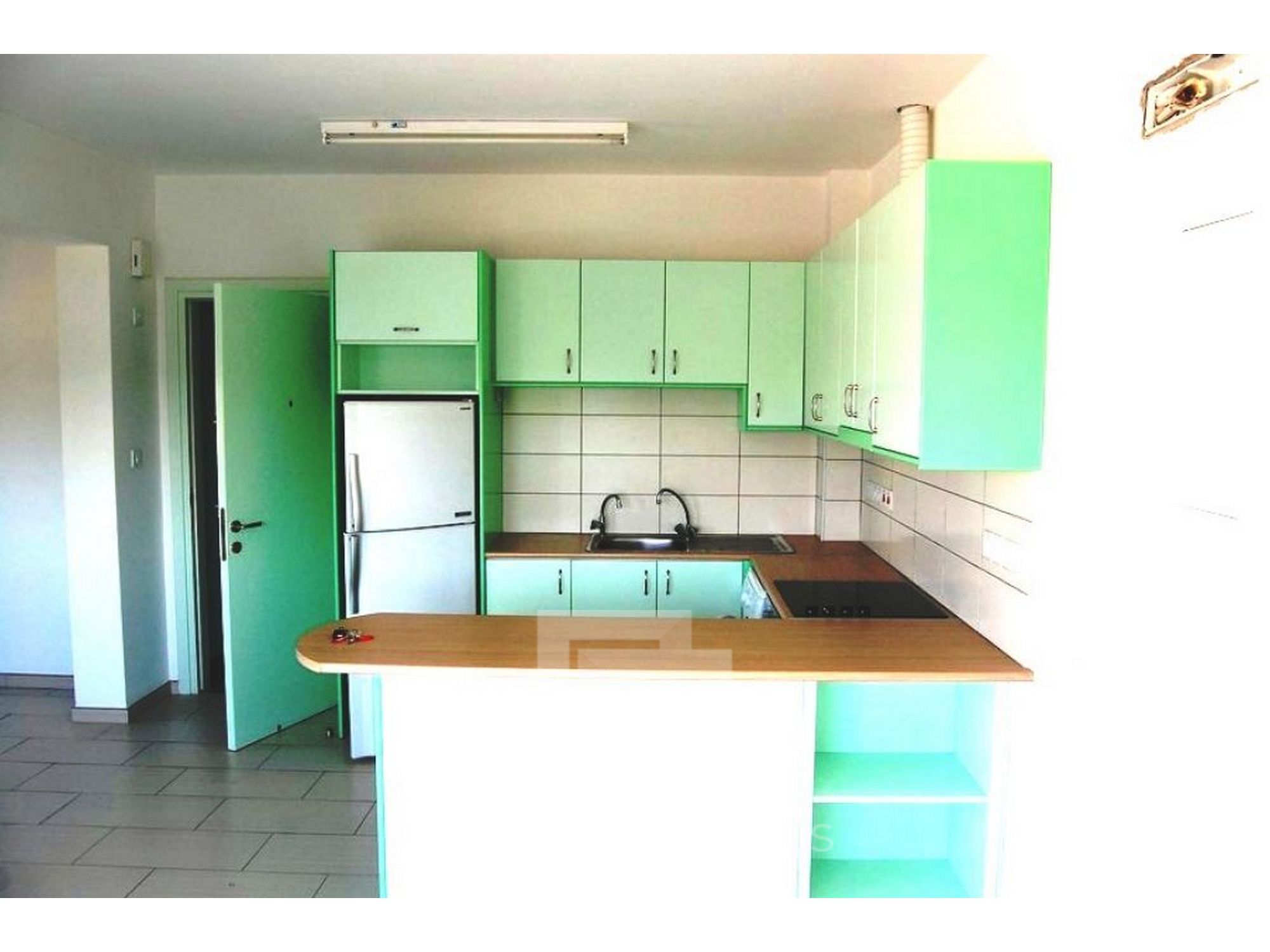Flat is in an L-shape which makes it very practical. There is a lot of storage space in the kitchen and sleeping area.