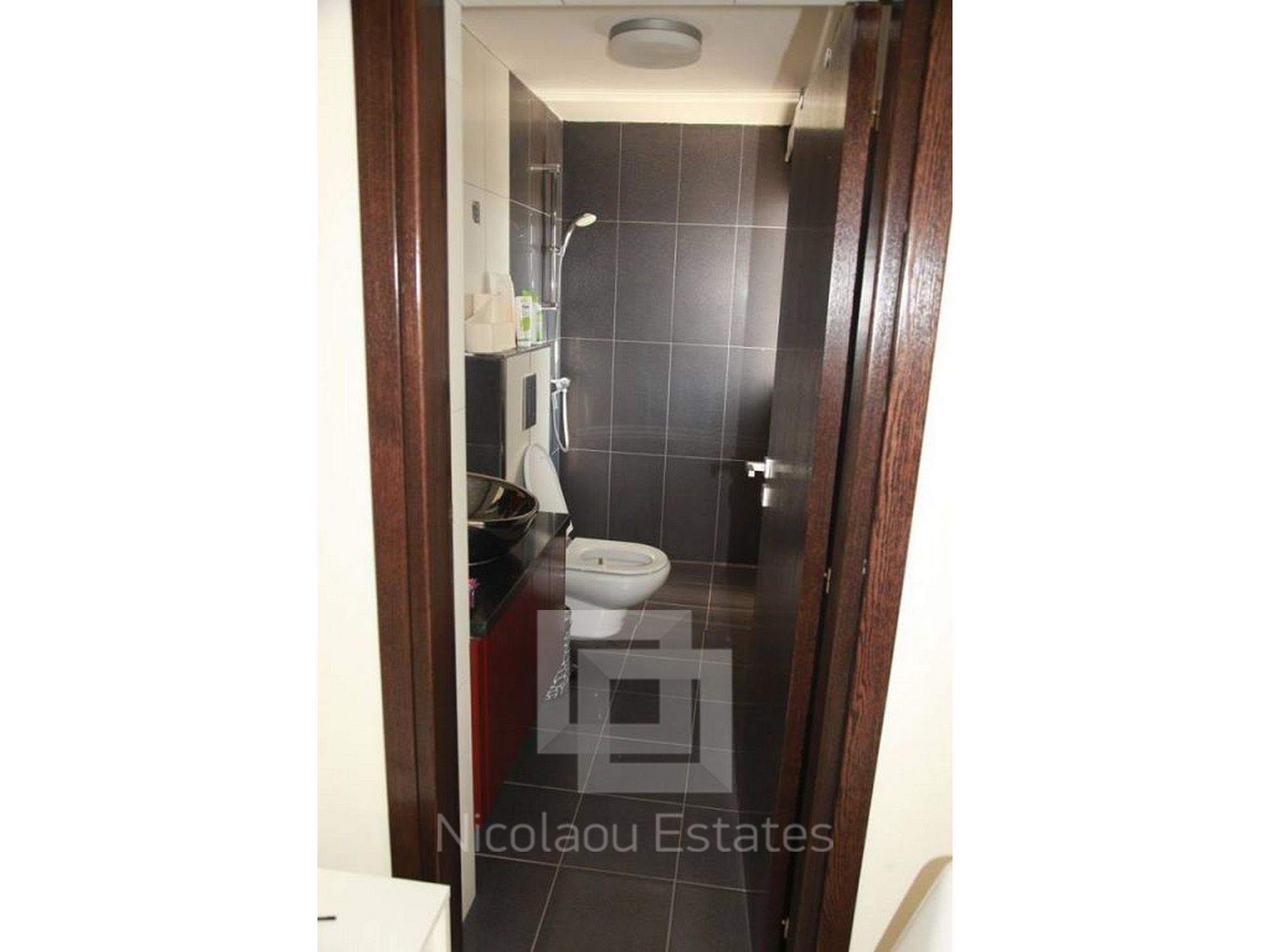 A bathroom & additional room is on the first floor. It can be used as a service room, bedroom or office.