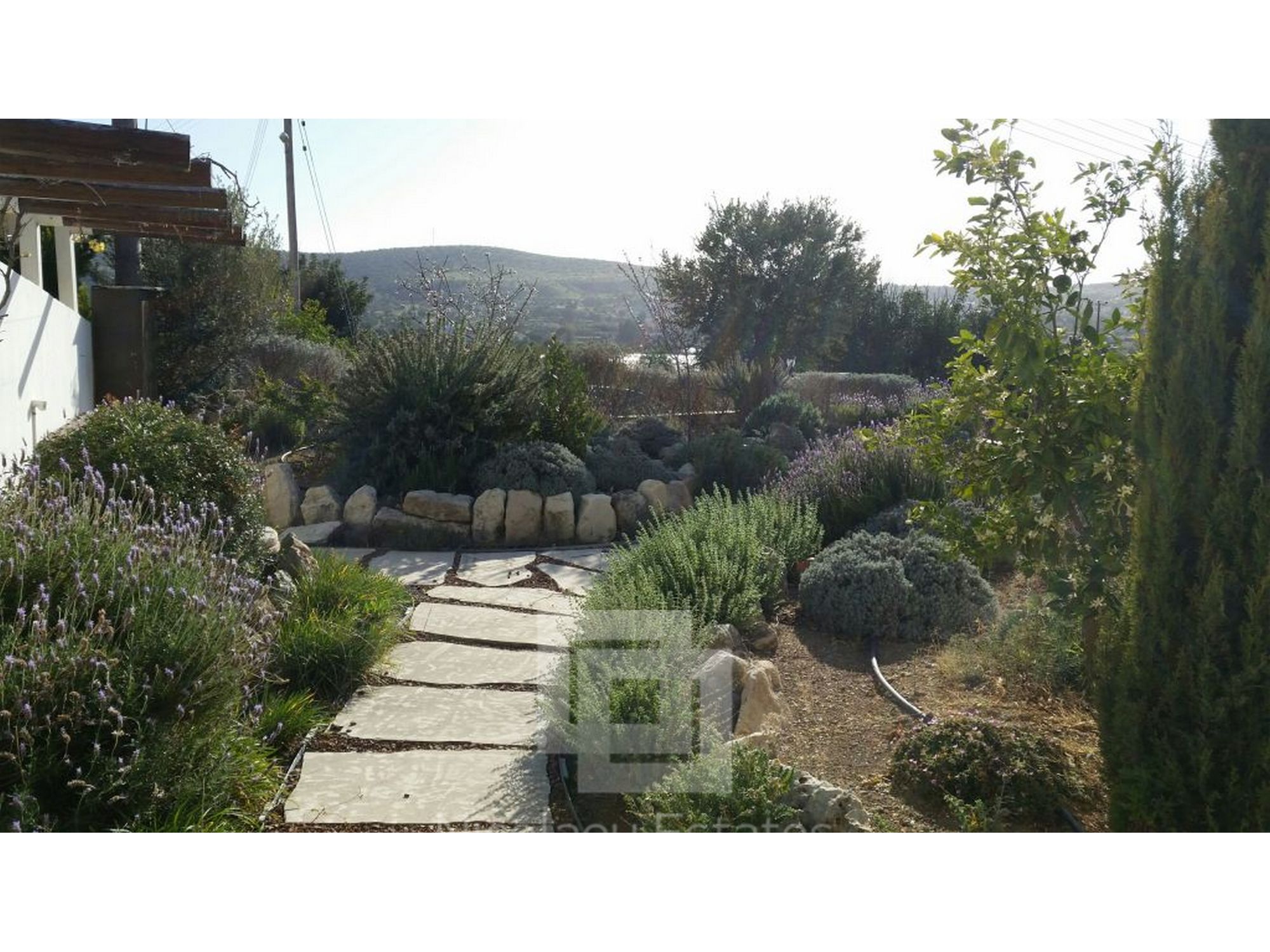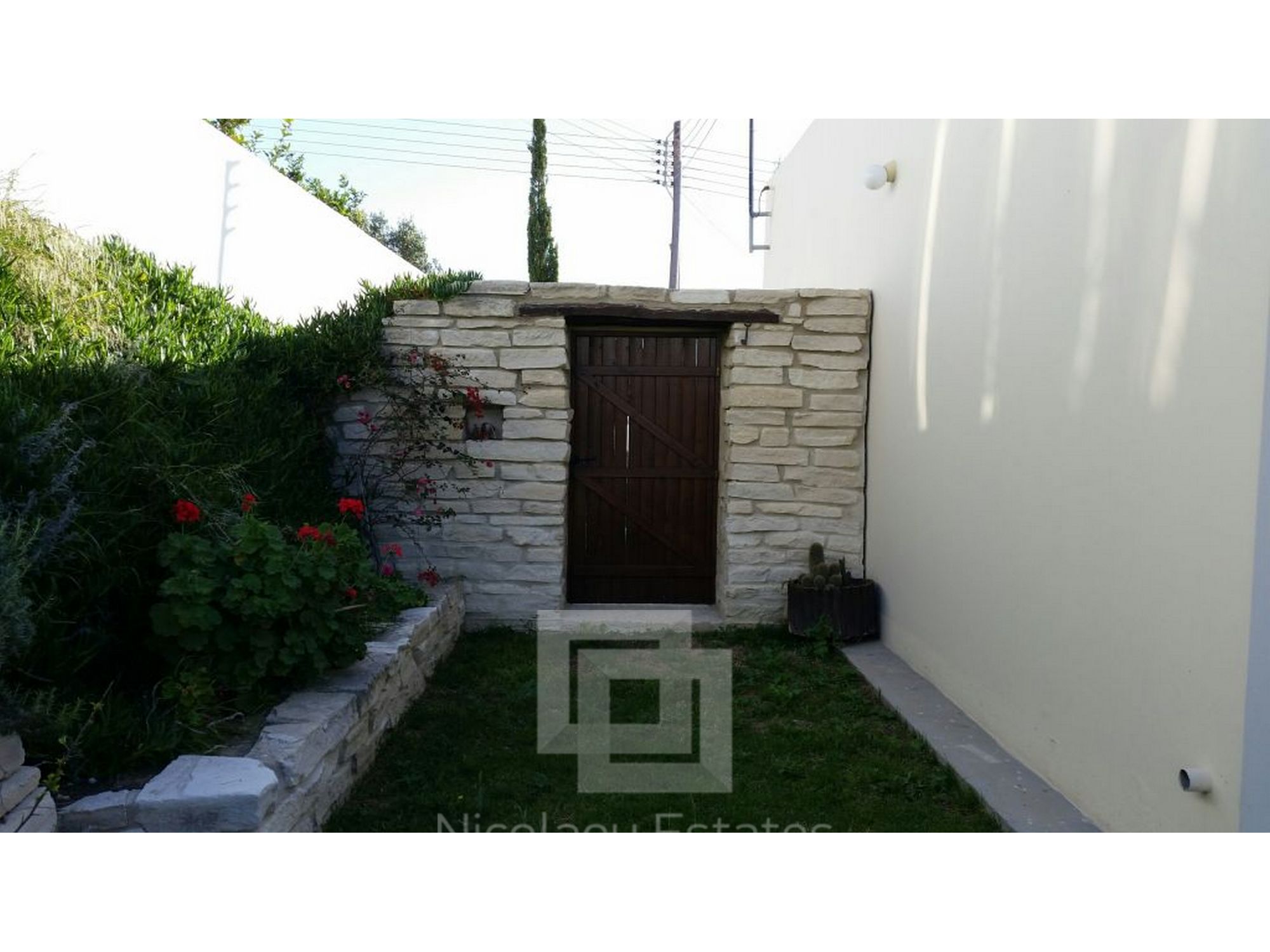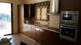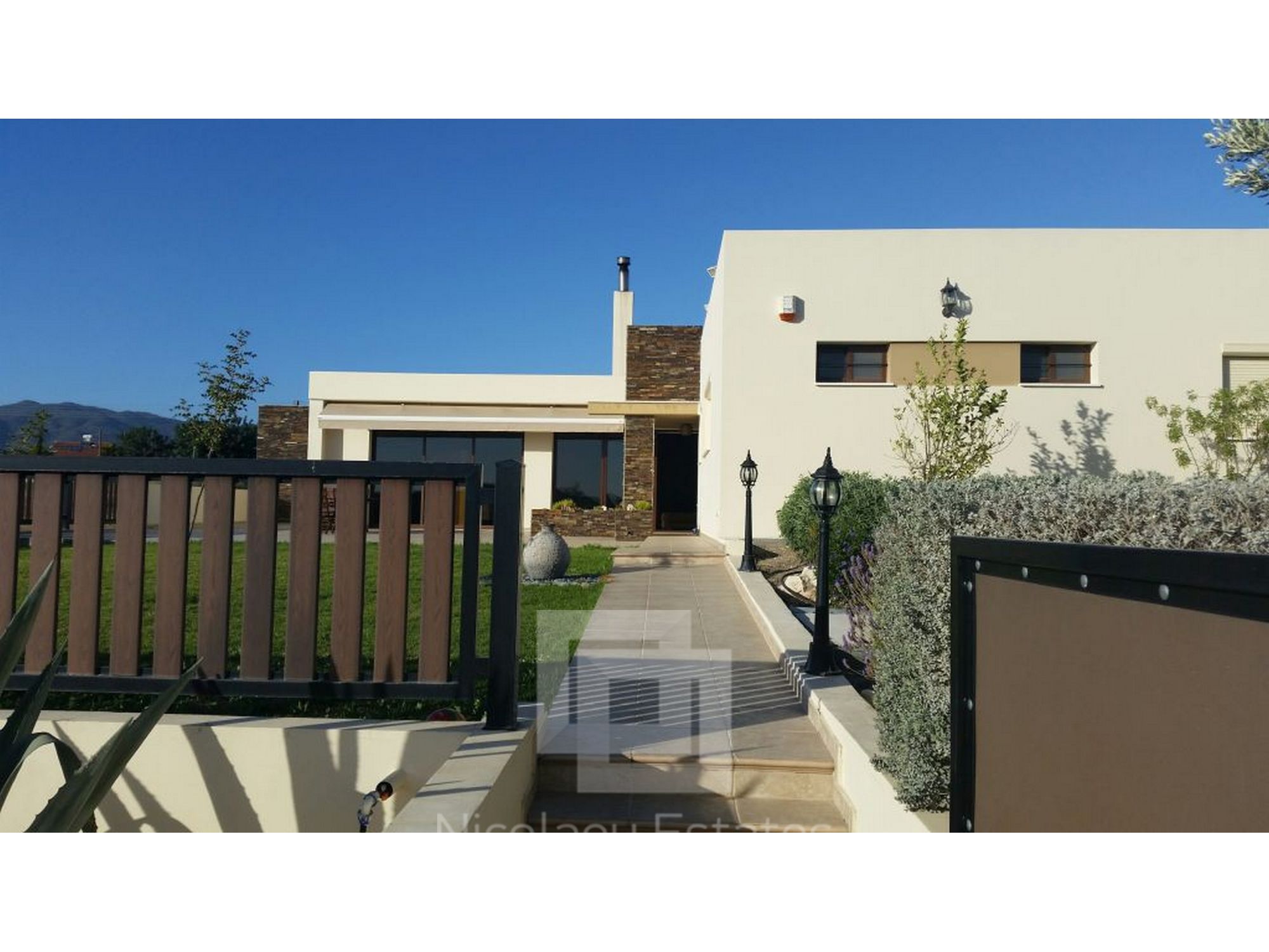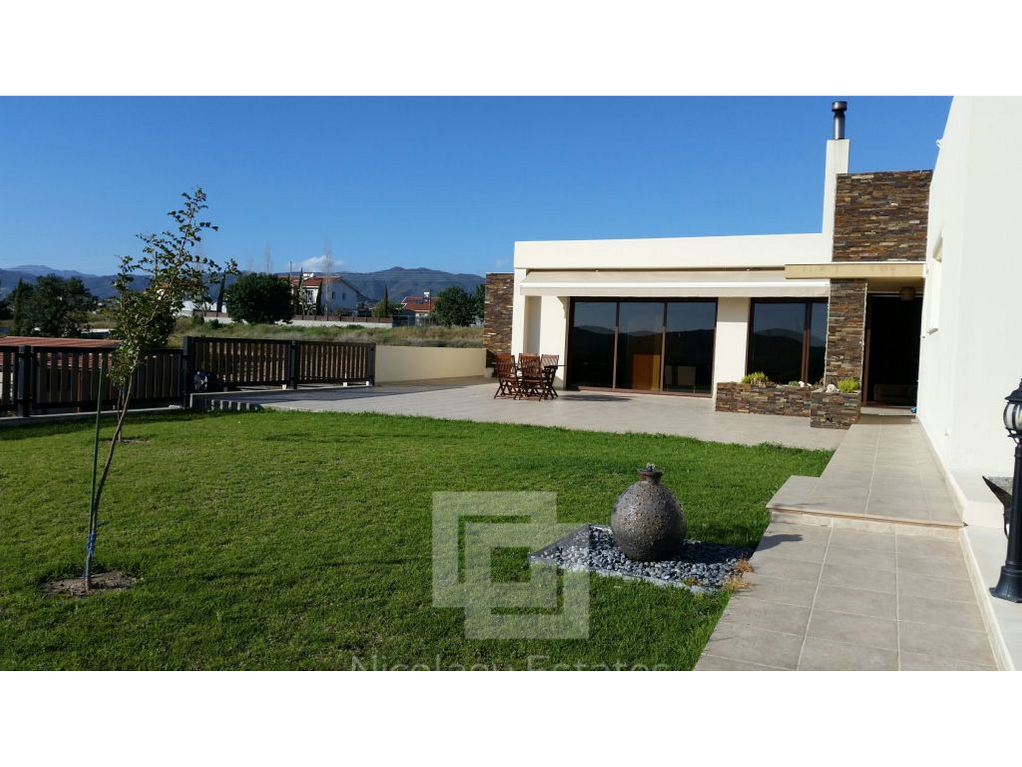 It has 240sq.m covered area and 1001sq.m plot. In the ground floor there is a kitchen, living room/dining room with fire place, guest wc and a laundry room. There is 1 ensuite bedroom with a shower, wardrobe and spacious cabinets. Furthermore there are 3 bedrooms with spacious cabinets, 1 common bathroom and 3 wc, office, and a covered veranda. Outside it has a nice garden with lounge area, with automatic watering system, pergola, 2 covered parking with electric gate.