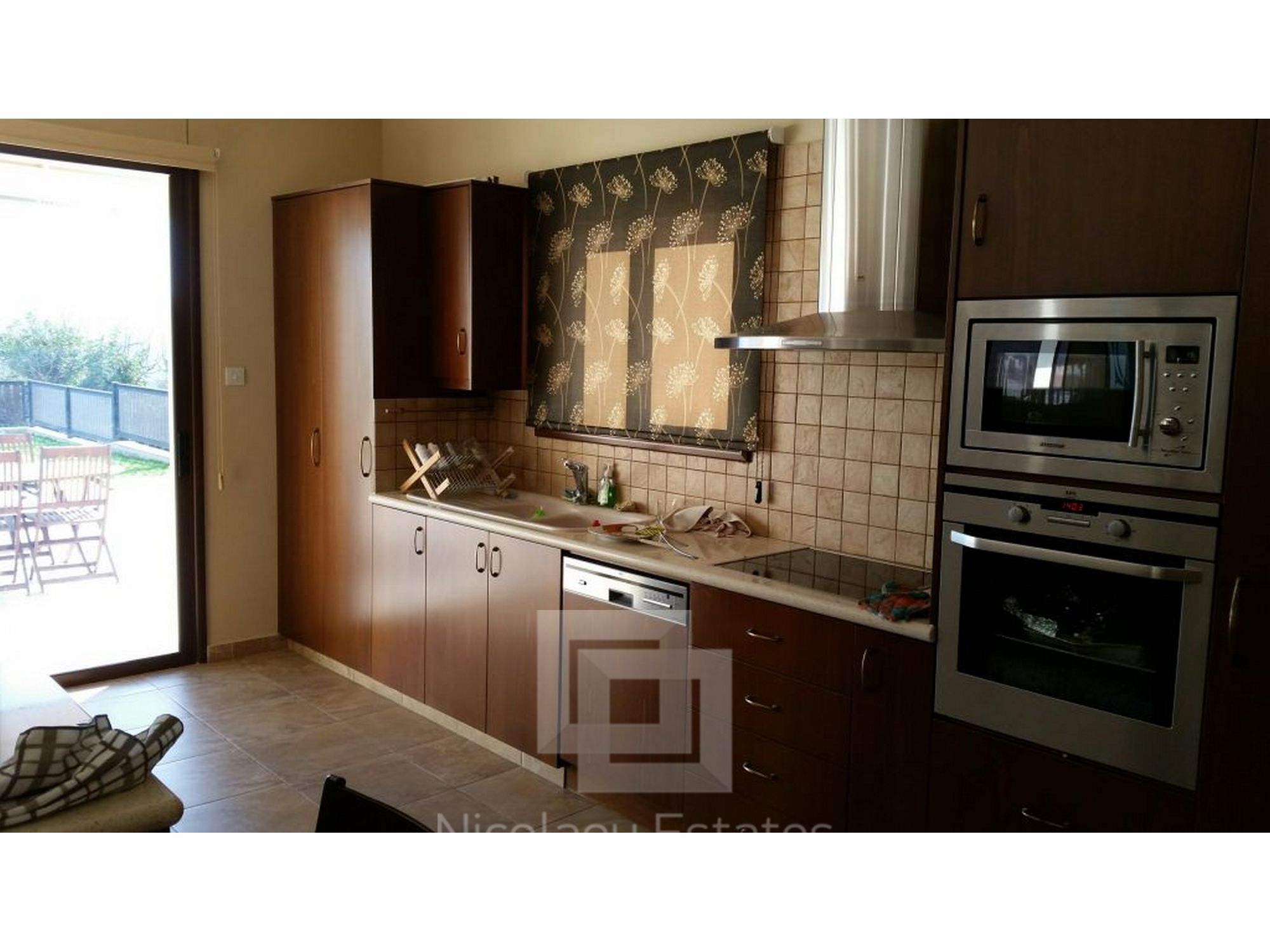 The house is fully air-conditioned, with window screens, and roller blinds, light features and security system. It has electric shutter, Italian ceramic flooring, sockets in very good quality, solar water heater with pressure, mosquito nets, all mixers are stainless steel high quality, ceramic sanitary first quality Italian origin, comfortable and large room cabinets from top quality wood with an integrated stainless steel lifting and Italian handles.