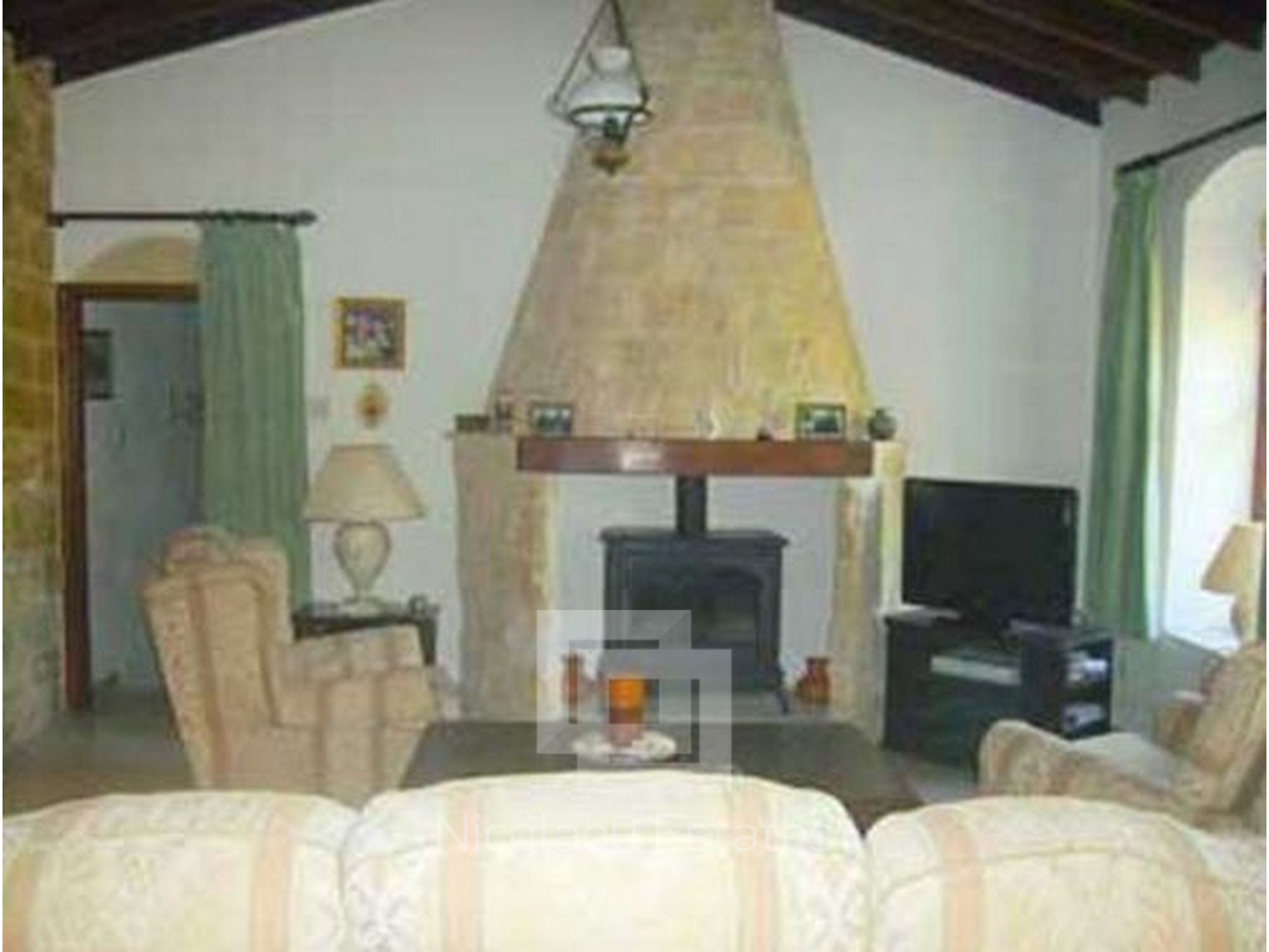 Large lounge, lighted alcove feature in the stone wall, original timber ceiling.
