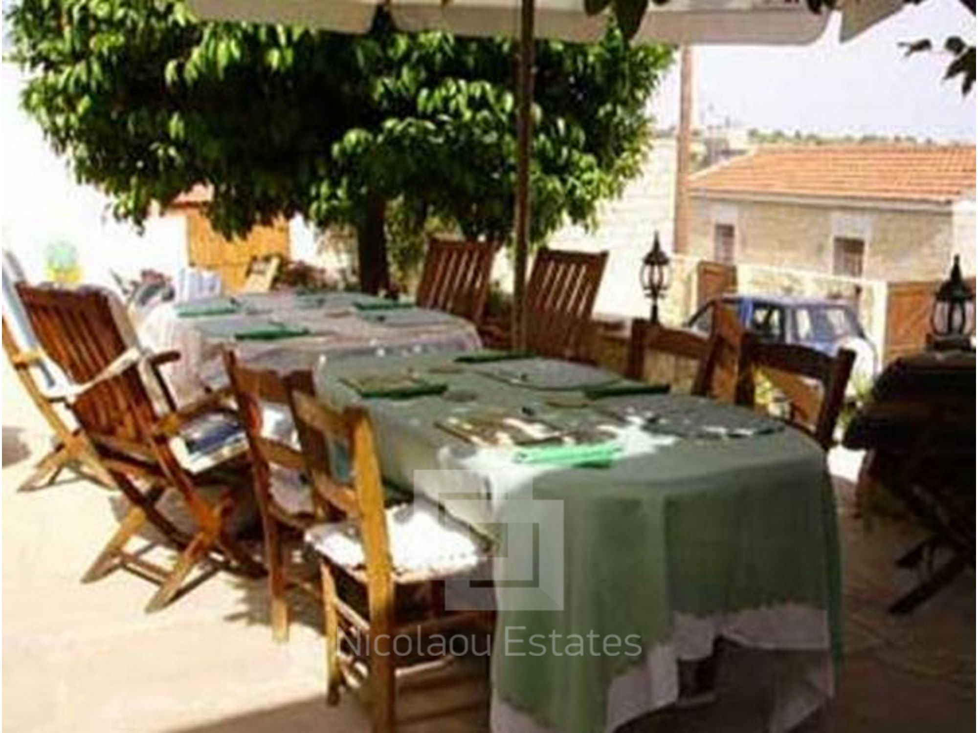 Large private walled garden with carport and secure parking for 5 cars, mature lemon, orange and pomegranate trees and 4 olive trees.