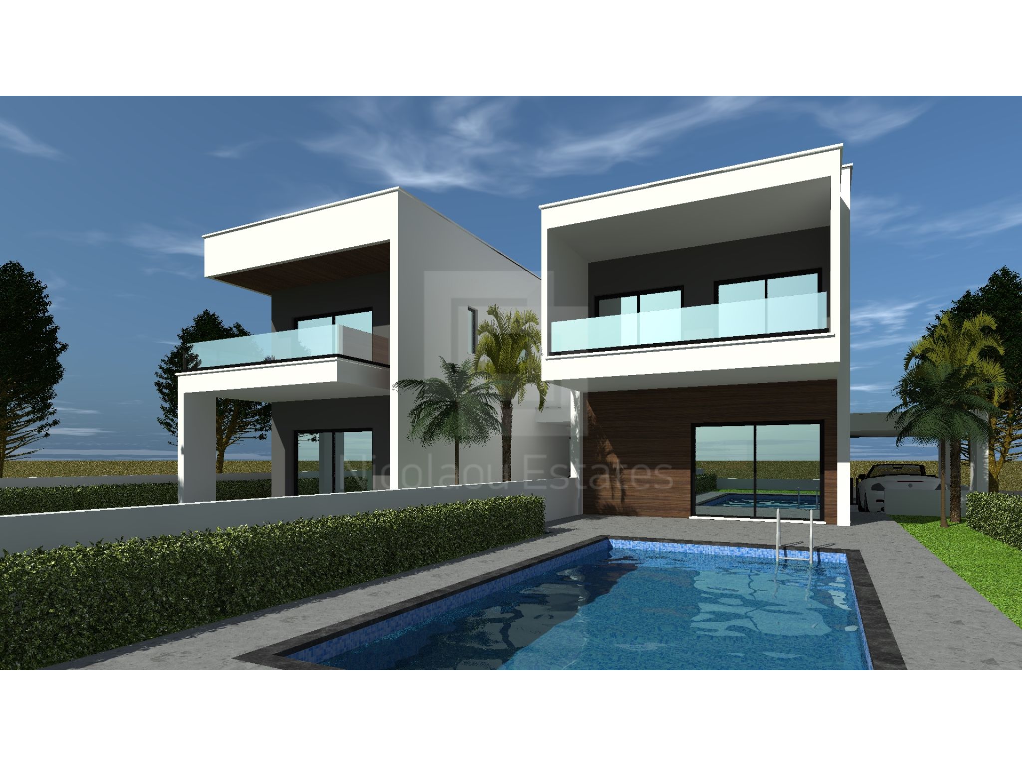 This project consists of 2 detached houses, both with swimming pool and photovoltaic system.