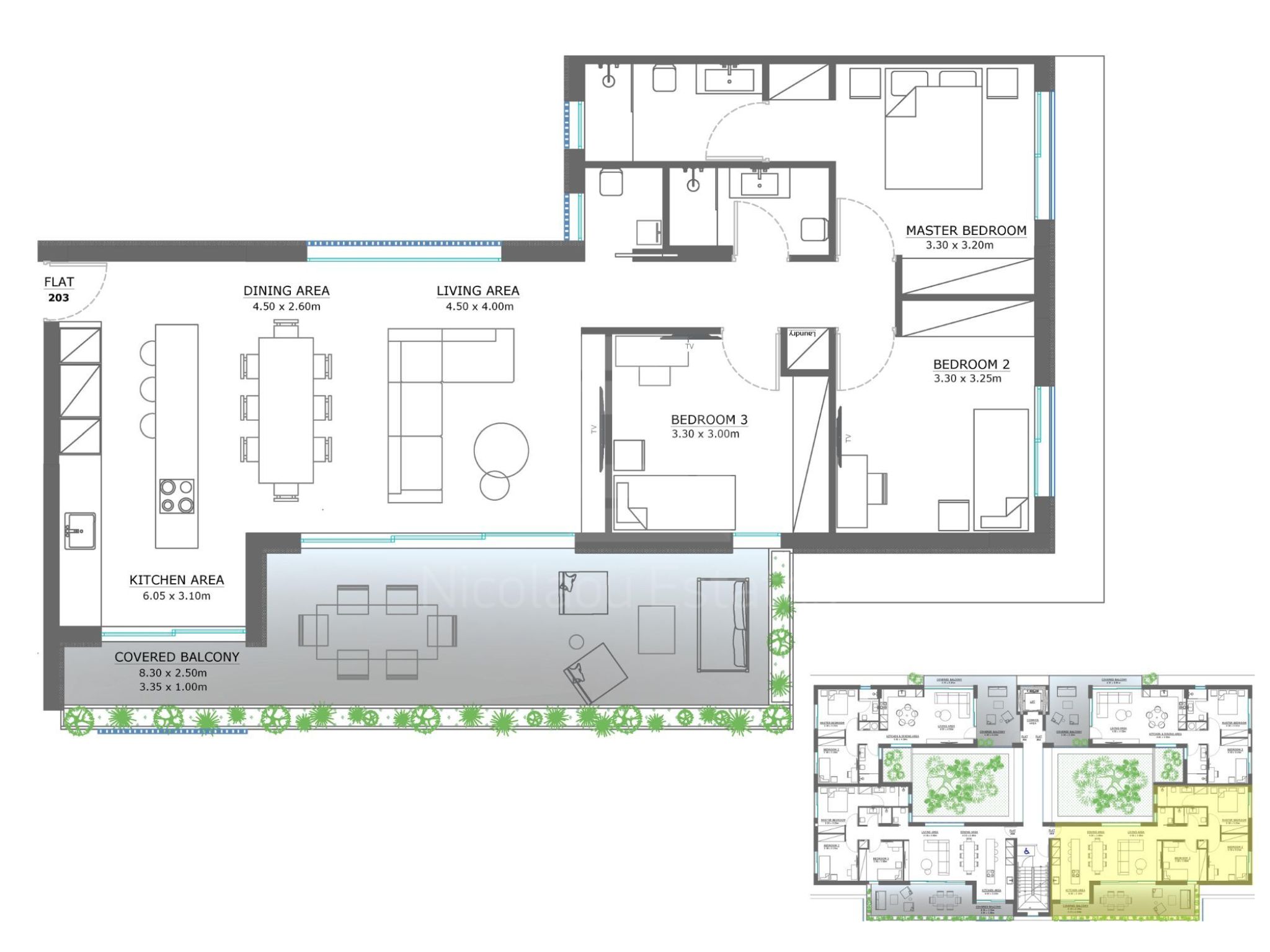 The building is comprised of 2 and 3-bedroom luxury apartments and two exquisite 3-bedroom penthouses with unobstructed views of the Nicosia skyline.