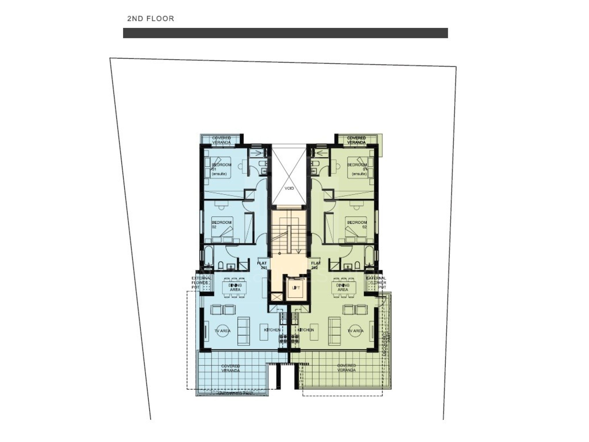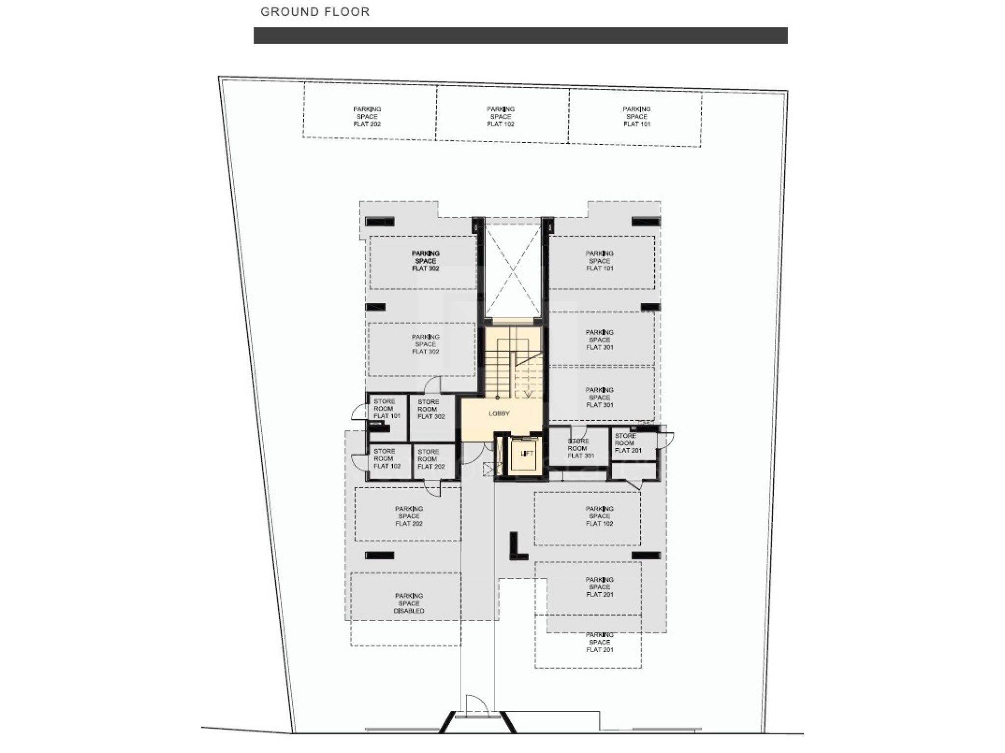 Each apartment has 2 parking spaces as well as its own storage room.