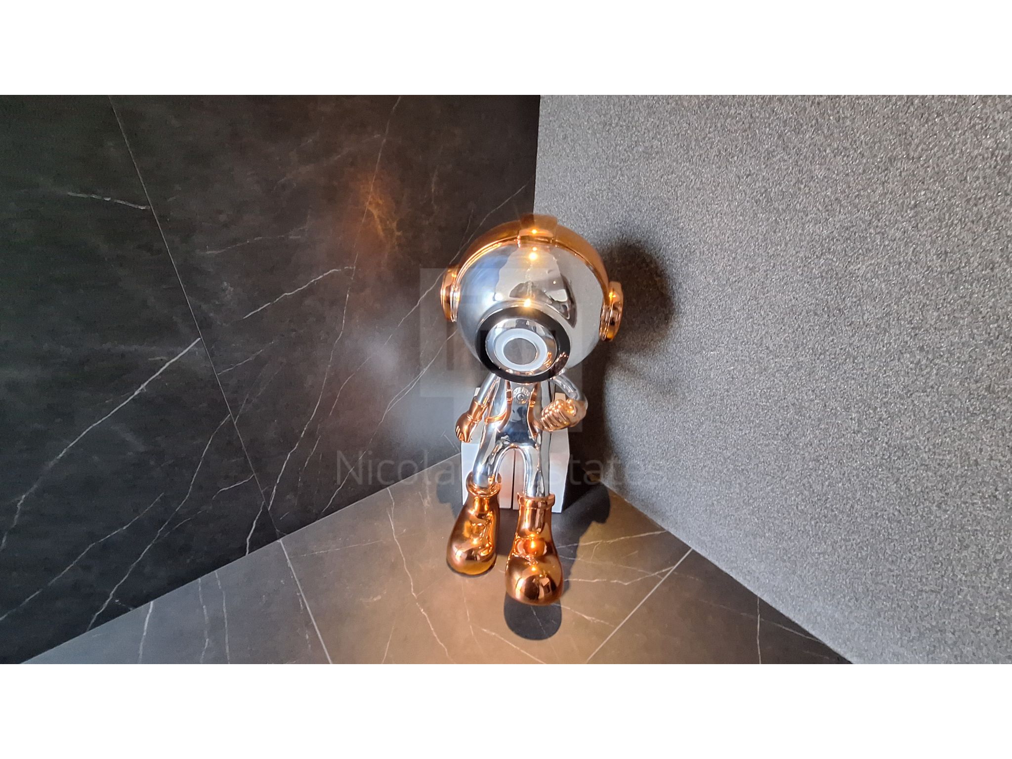 High end with expensive designer furniture and fittings.