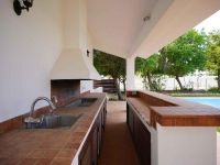 The auxiliary building has a covered area of approximately 110 sqm and a covered veranda area of approximately 17 sqm. It consists of a kitchen, living room, bathroom with shower, laundry room, one bedroom and covered verandas.