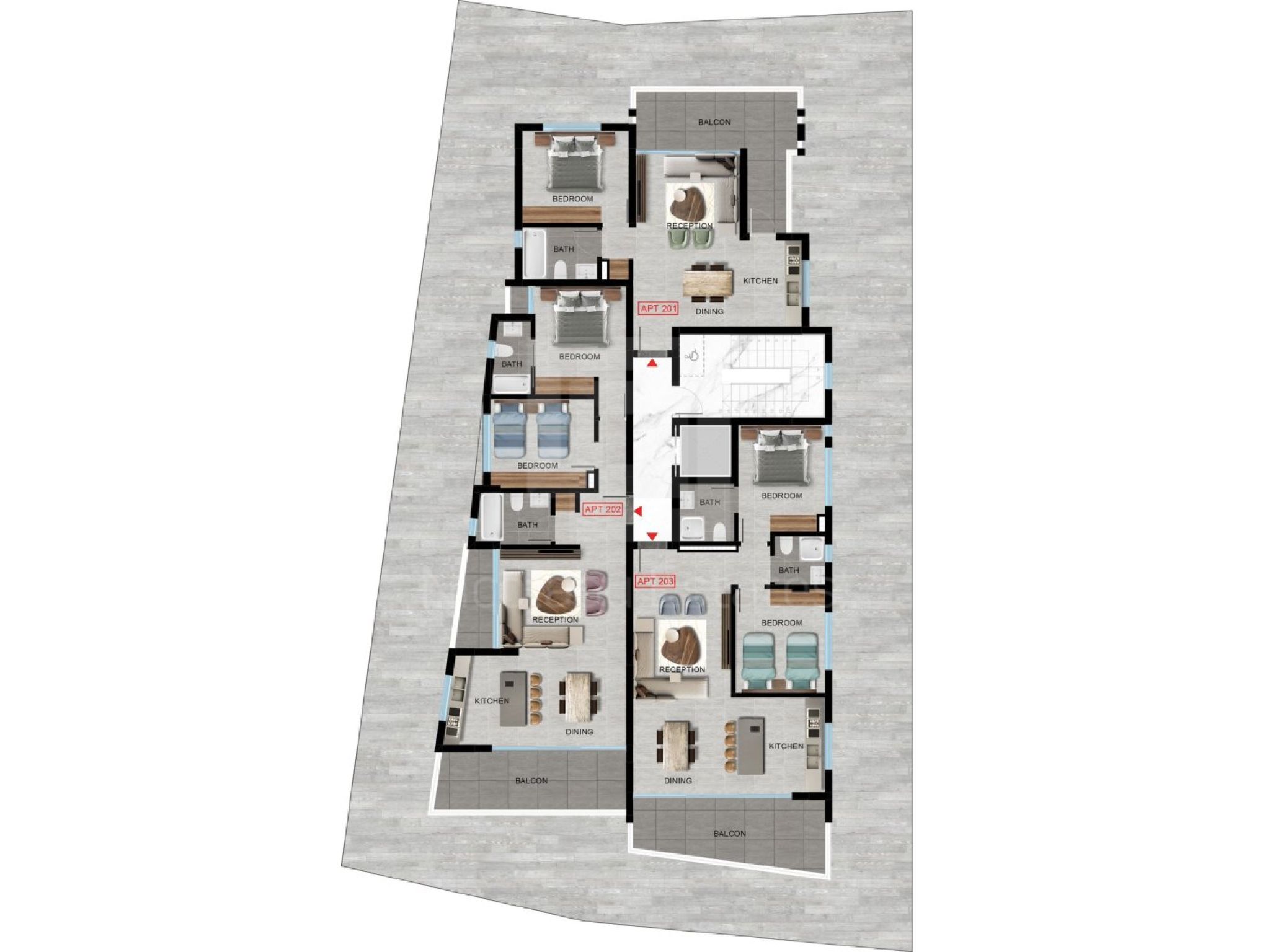 A modern two-storey residence consisting of six apartments that combine contemporary design with comfort.