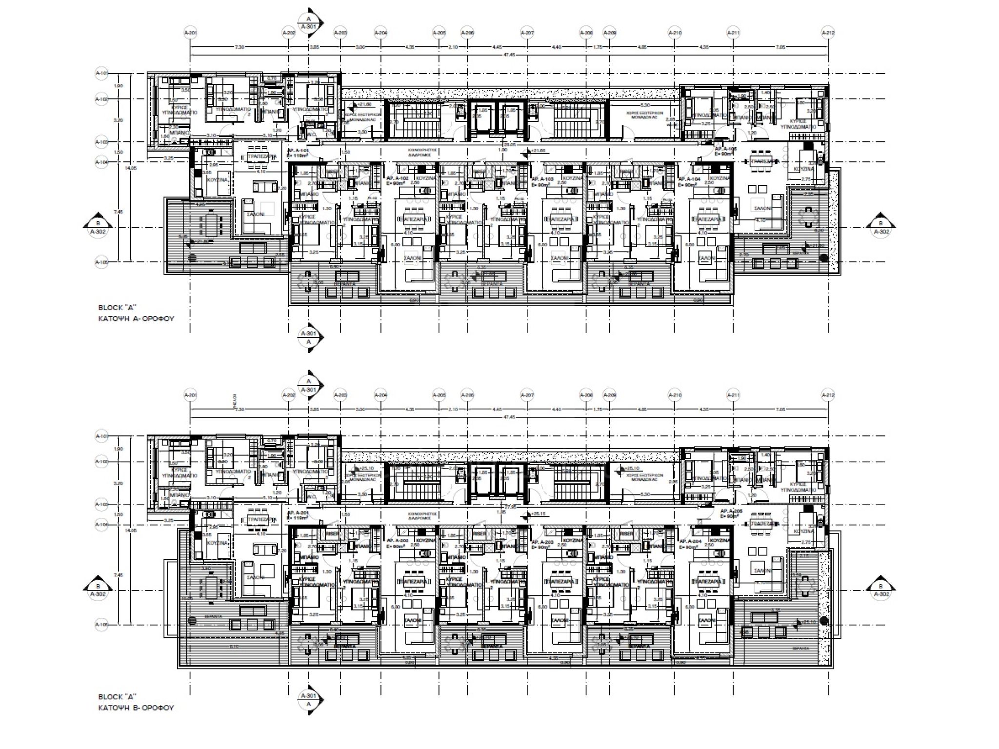 The living and dining area, kitchen, corridors, bathrooms, terraces and storerooms will be paved with ceramic tiles.