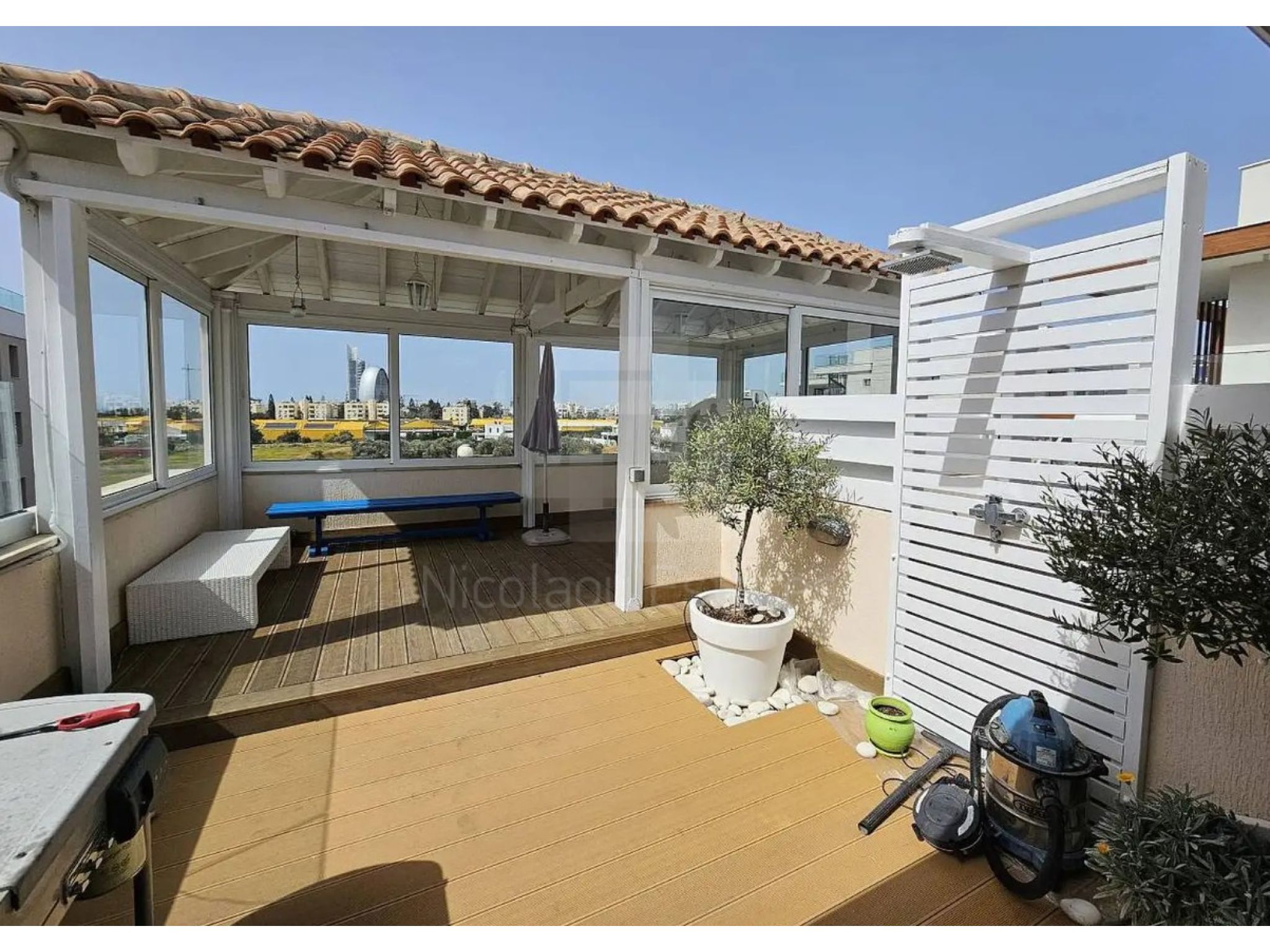 A three-bedroom penthouse for rent in a very quiet area of Papas, Germasogeia. Only 100 meters from Dasoudi Park and the beach.