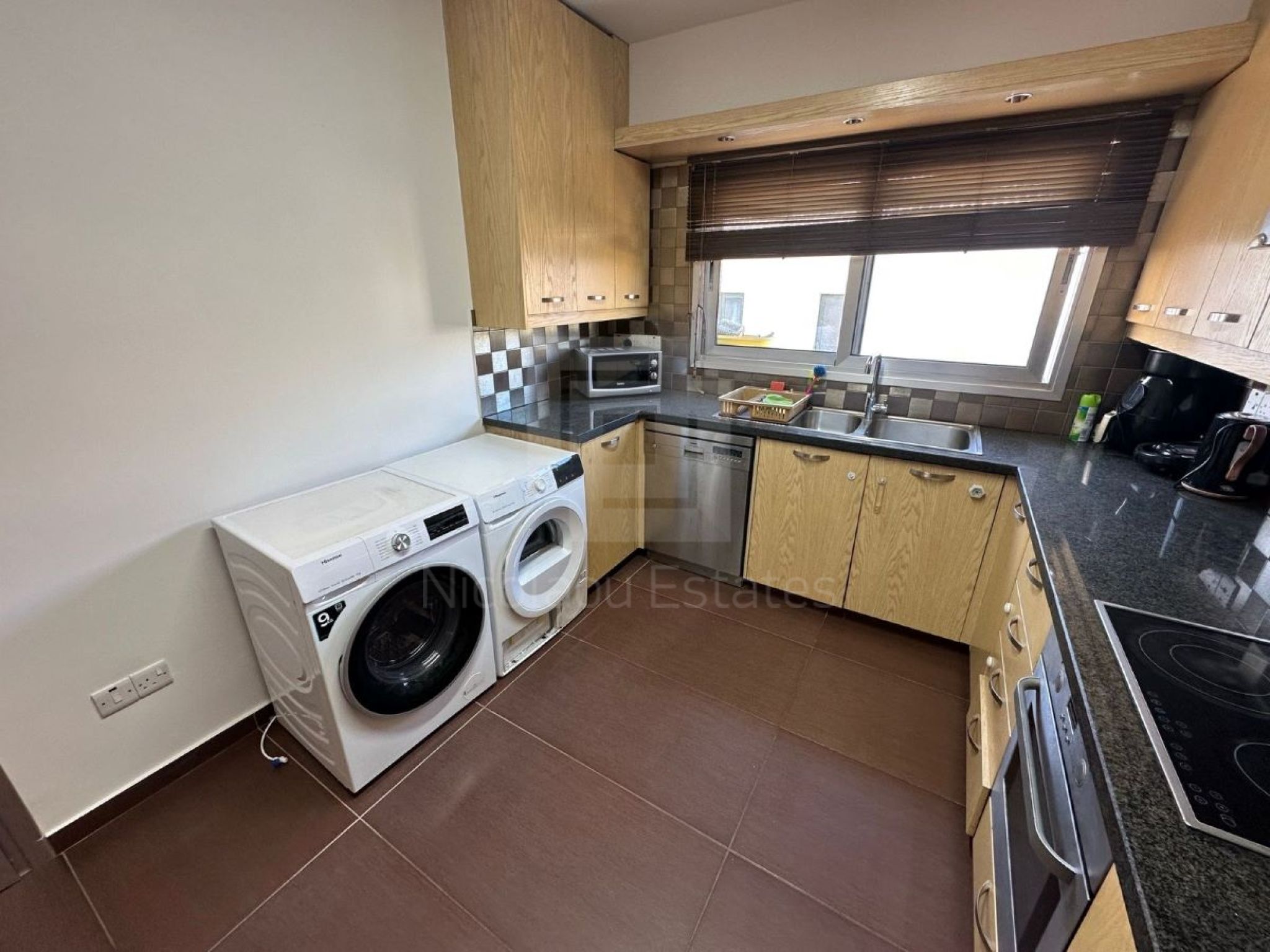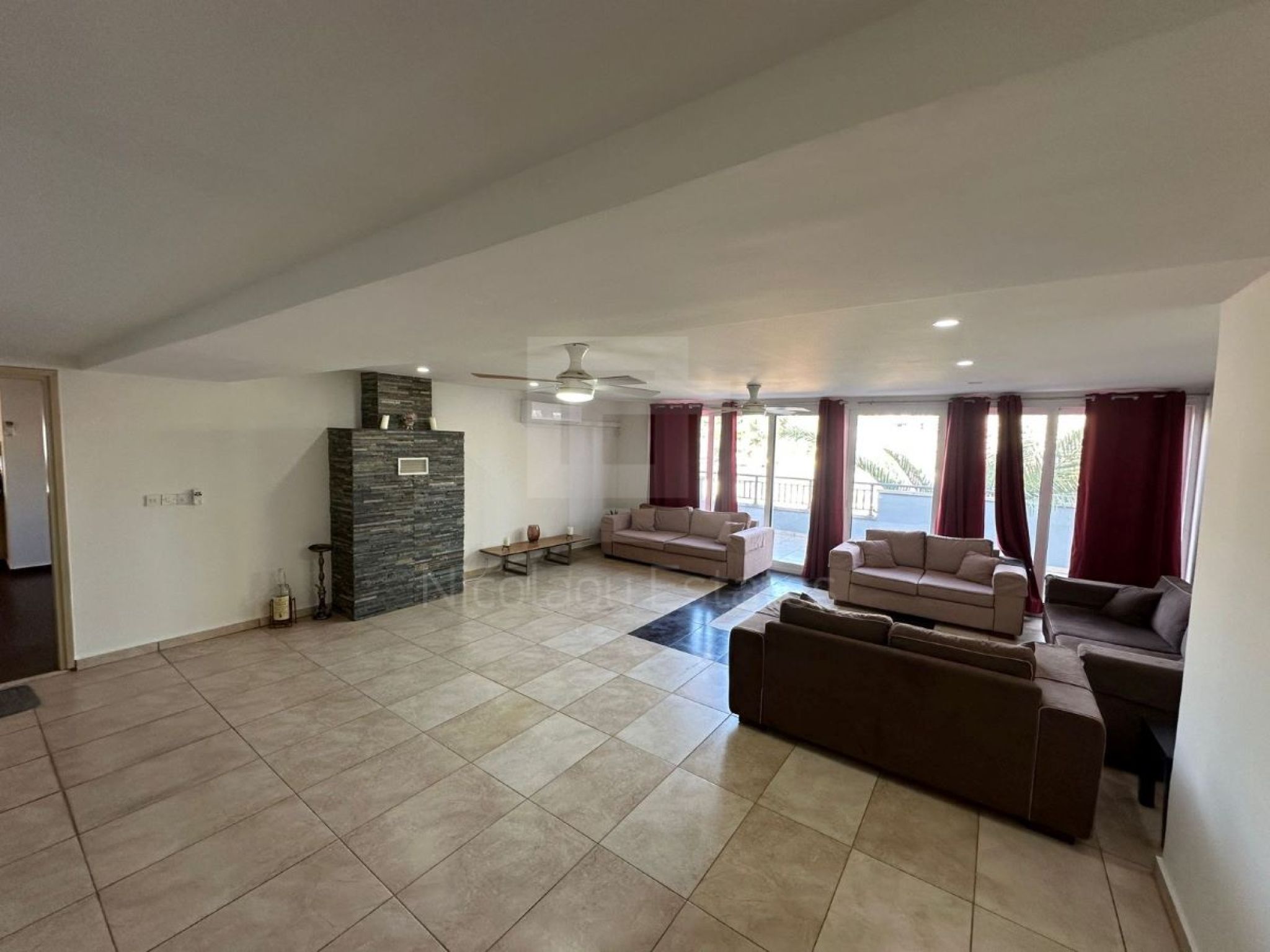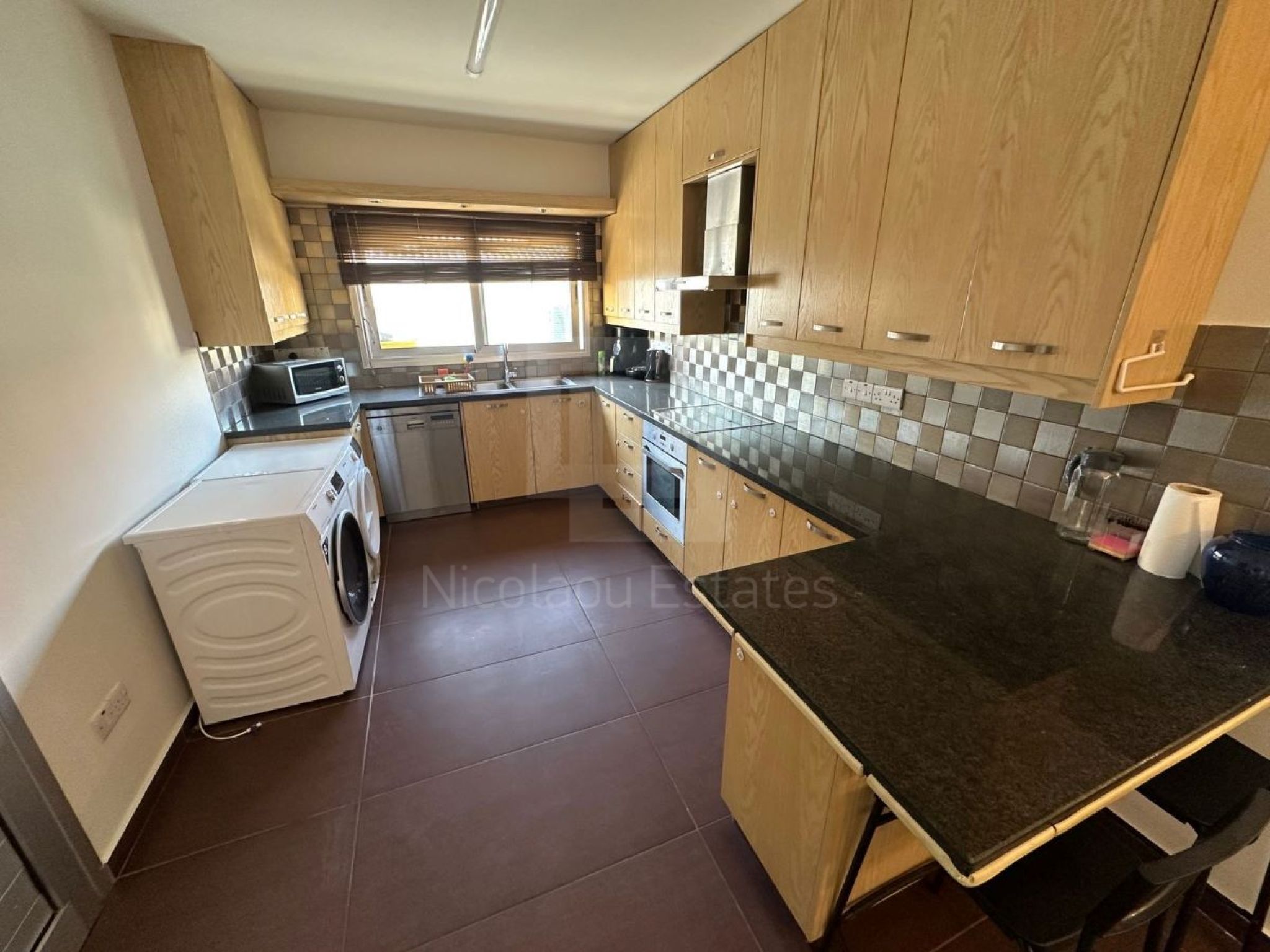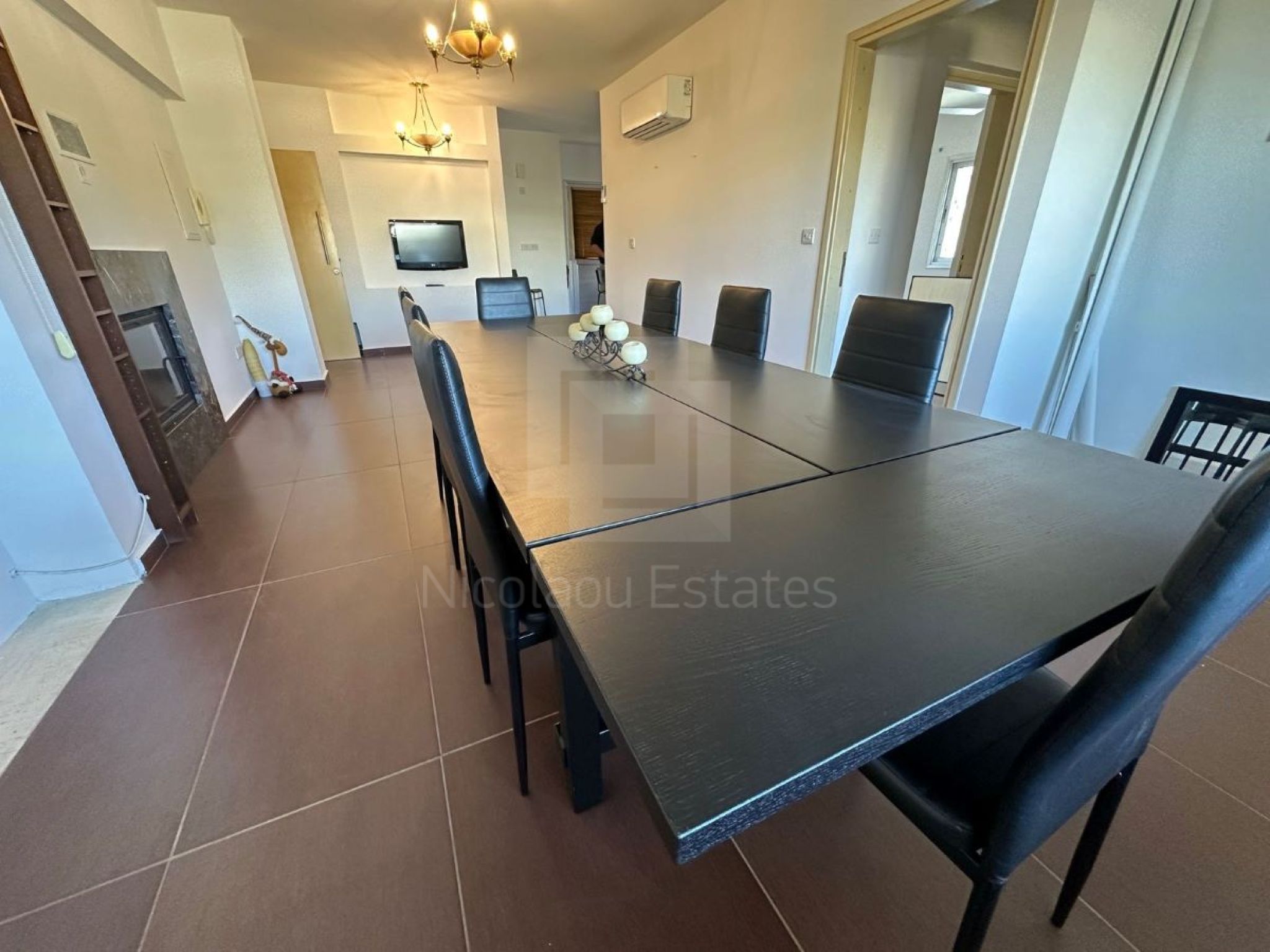 The apartment is located on the top floor of a 2-story building and consists of 3 spacious bedrooms, the main one with en suite and large wardrobe, 1 bathroom, 2 comfortable living rooms, fully equipped kitchen with all household/electrical appliances and granite countertops. The apartment has large verandas, fireplace, air conditioners, double glazing and a covered parking space.