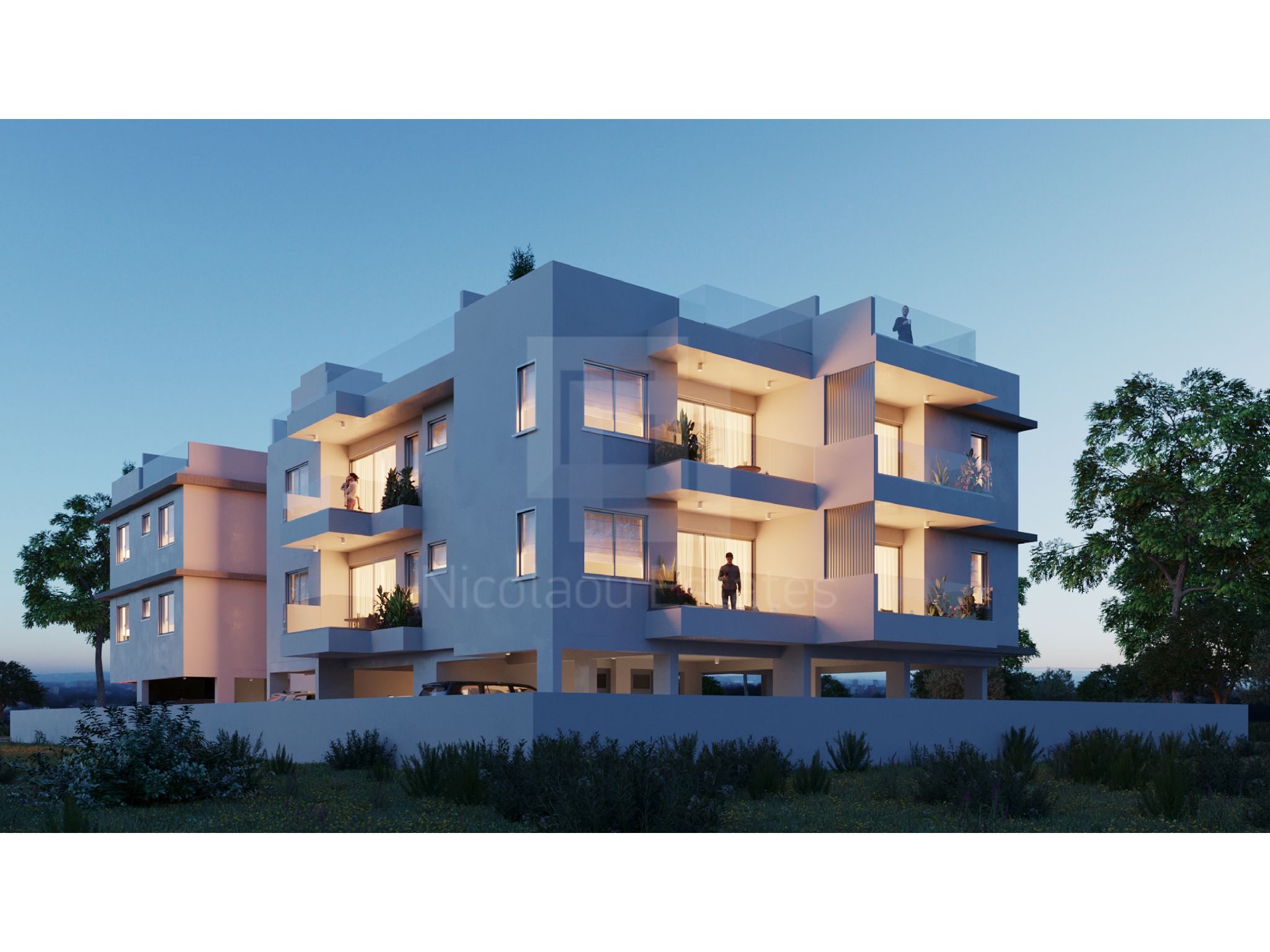 Τα διαμερίσματα χαρακτηρίζονται από άνετους, φωτεινούς χώρους, βρίσκονται στον 2ο όροφο και το κάθε ένα αποτελείται από ενιαίο χώρο σαλόνι/τραπεζαρία, 2 υπνοδωμάτια, εκ των οποίων το κυρίως με en suite, 1 μπάνιο, καλυμμένη βεράντα, roof garden, αποθήκη και καλυμμένο χώρο στάθμευσης.