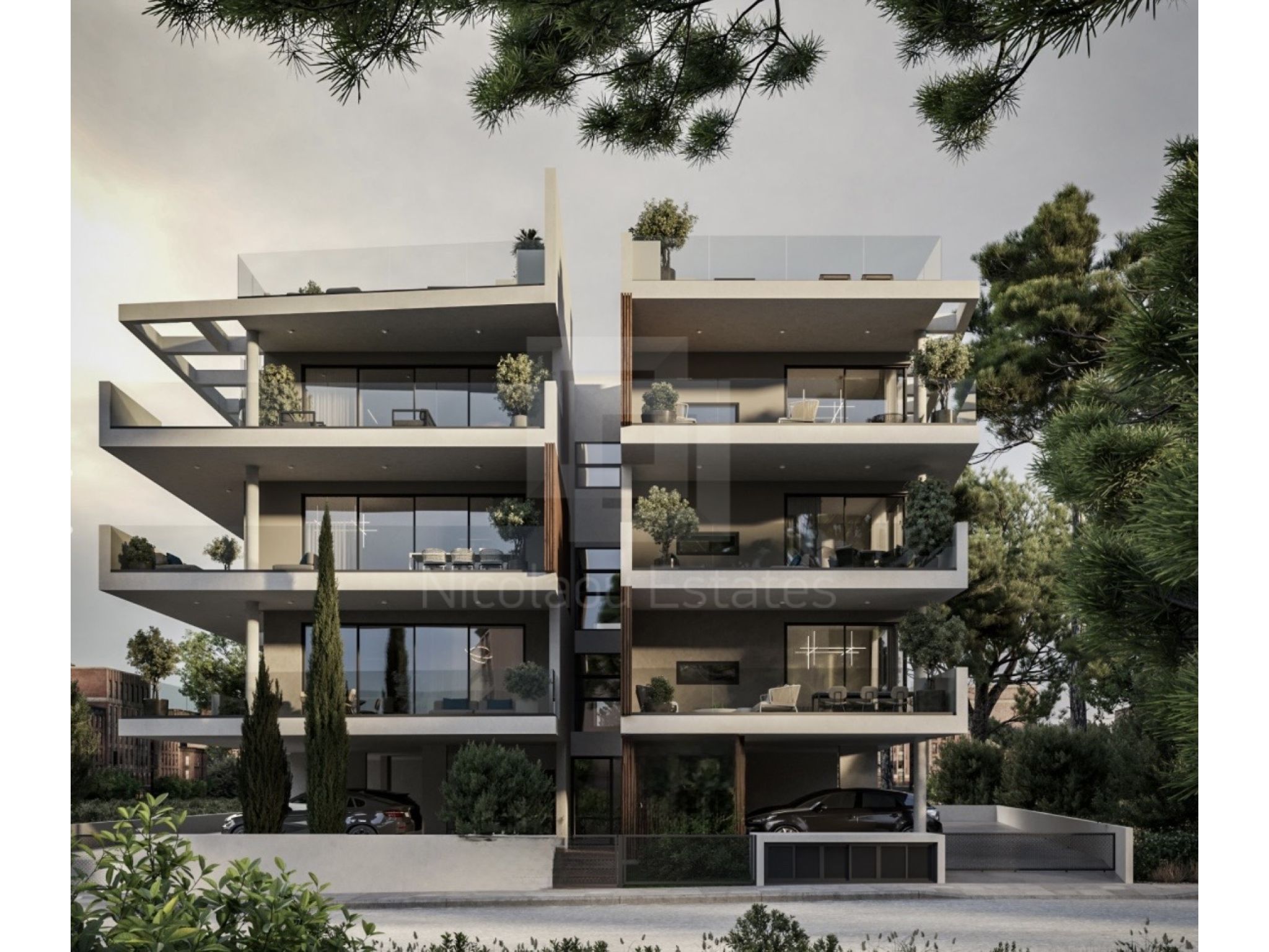 Διαμέρισμα 204 (265,000 συν ΦΠΑ): 80τμ εσωτερικός καλυμμένος χώρος, 22τμ καλυμμένη βεράντα, 63τμ roof garden, 2 υπνοδωμάτια, 2 μπάνια, καλυμμένος χώρος στάθμευσης και αποθήκη.