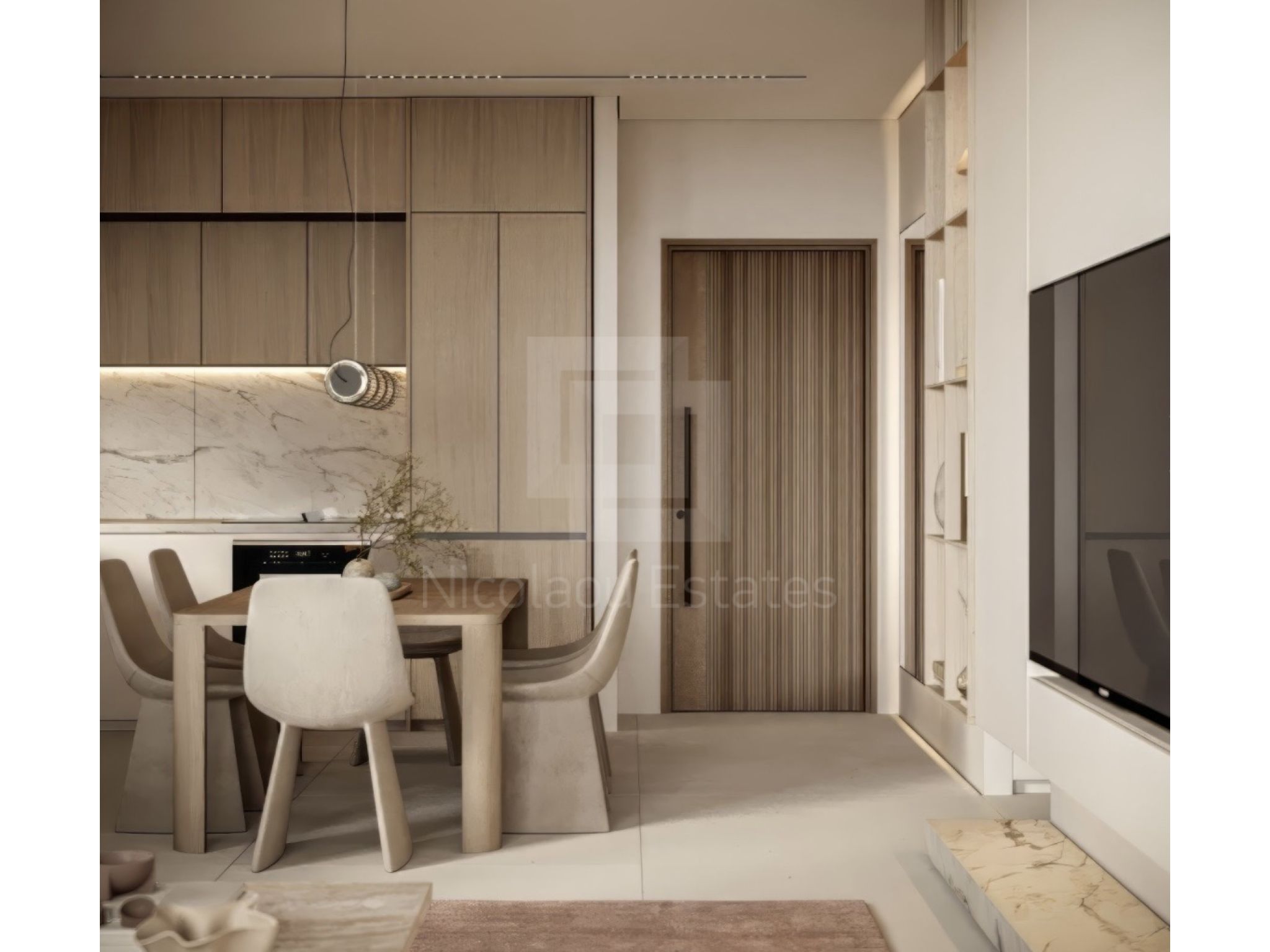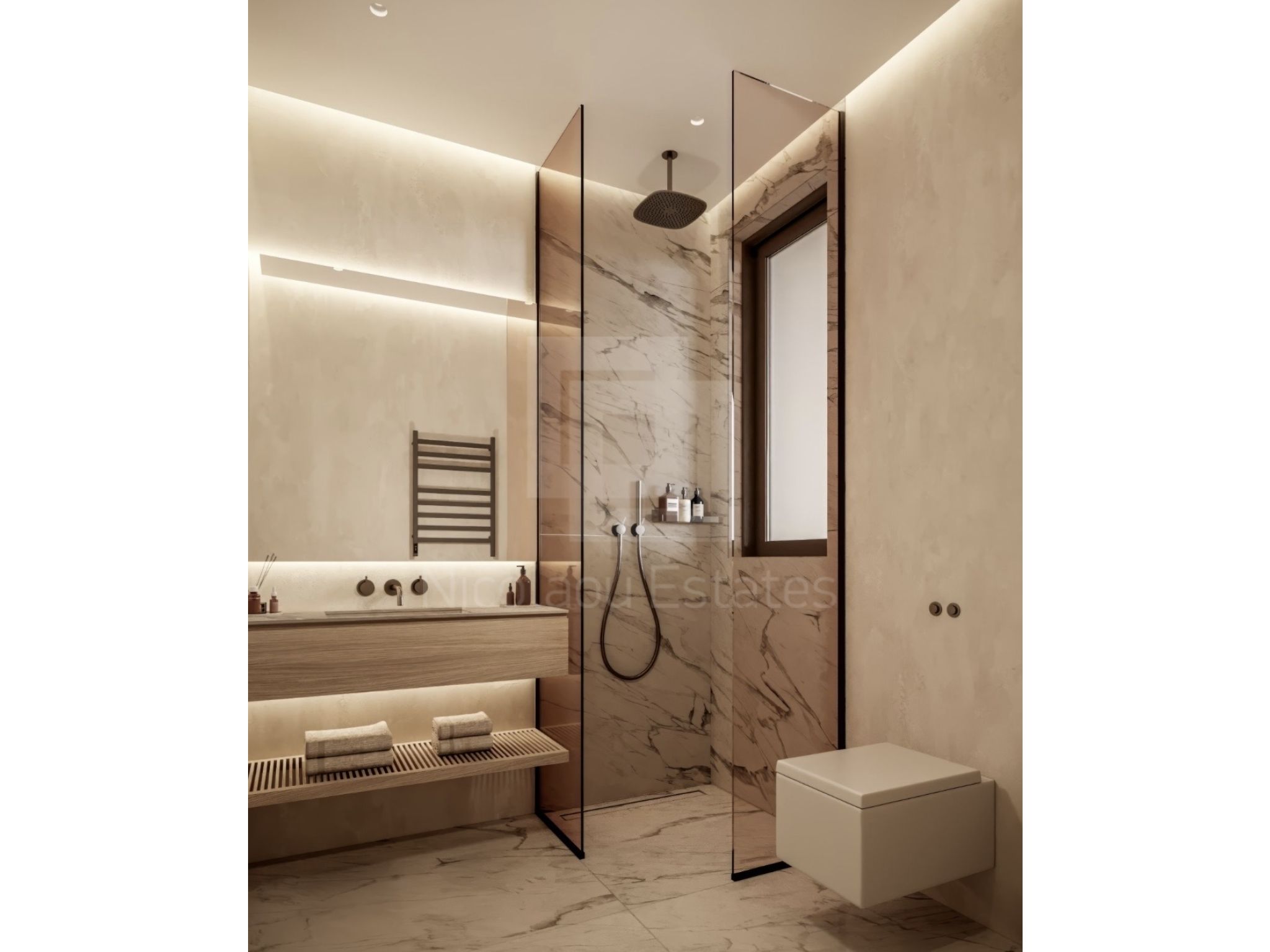 • Εντοιχισμένες ντουλάπες με αυτόματο κλείσιμο για εκλεπτυσμένη αποθήκευση