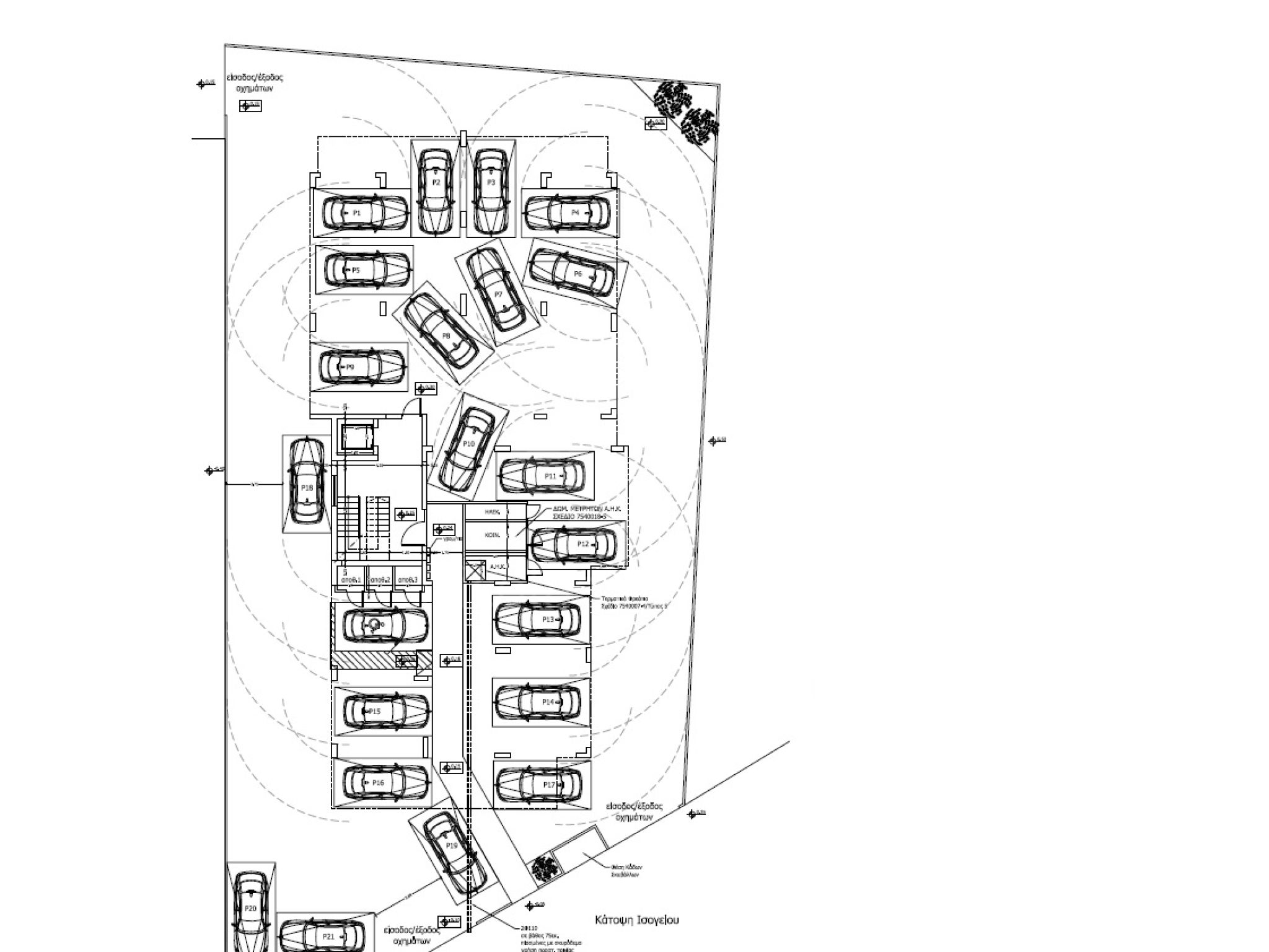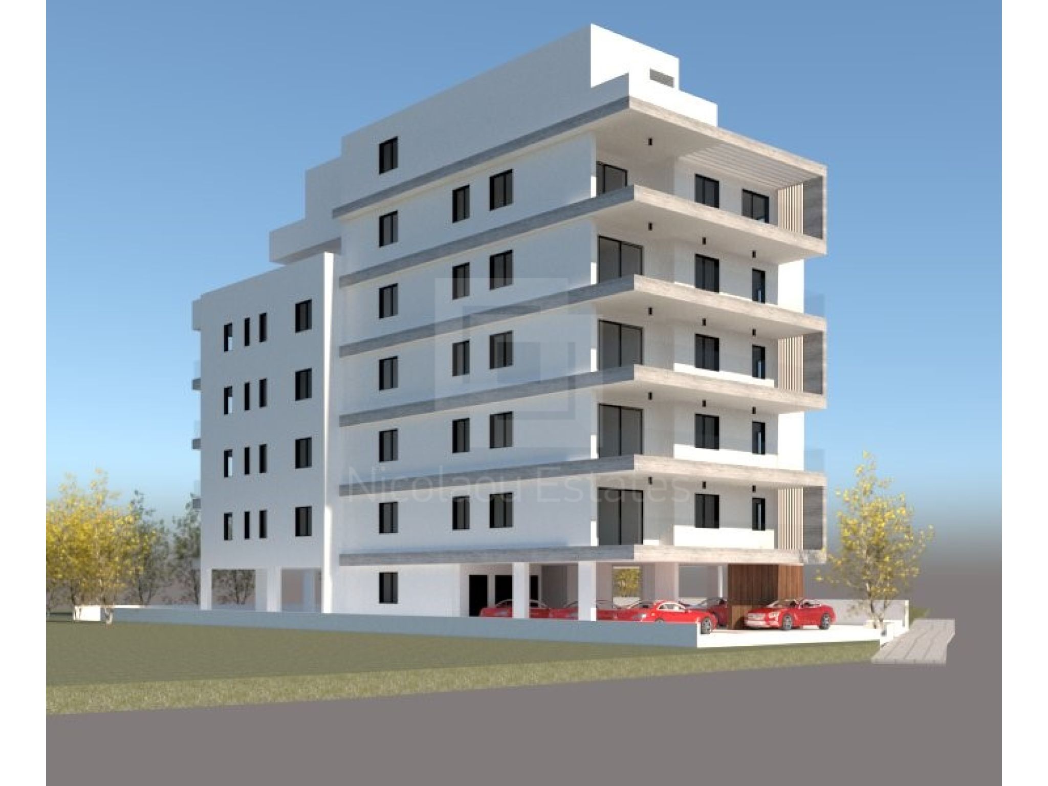 Στεγασμένοι χώροι στάθμευσης και αποθήκη για όλα τα διαμερίσματα.