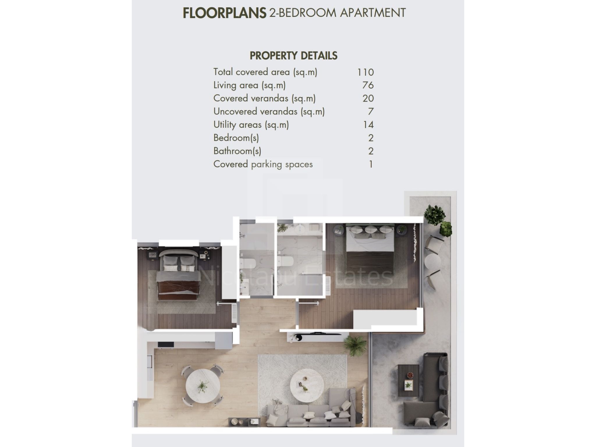 Luxurious, new 2-bedroom apartments for sale. The elegant complex of 56 modern apartments in four blocks, is built in the sought-after area of Livadia, Larnaca and offers comfort and luxurious living.