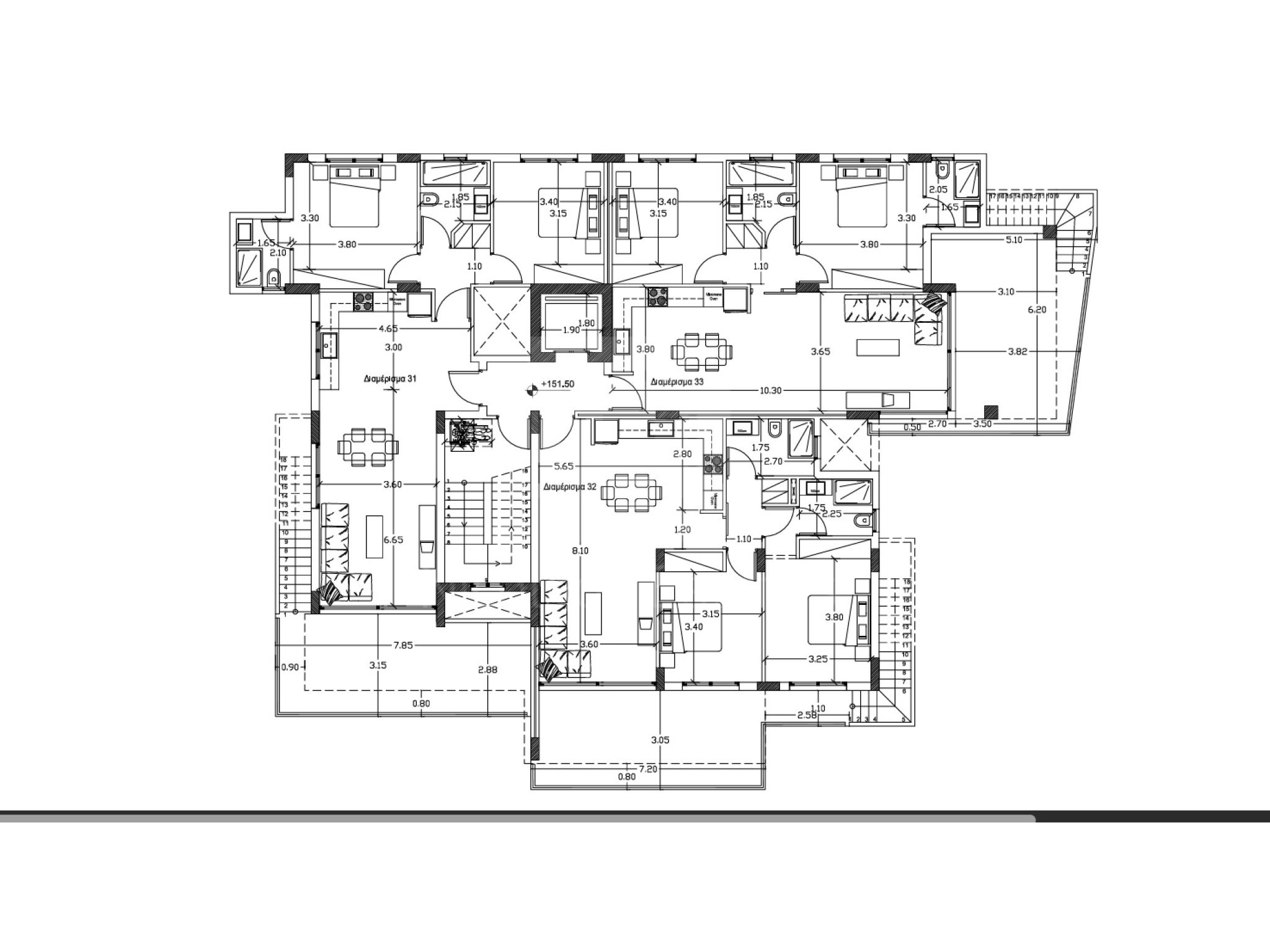 Penthouse apt.no.33 comes with 2 bedrooms, master en-suite (total 2 full bathrooms), 87.5sq.m net internal covered areas, 18sq.m covered verandas, 8sq.m of uncovered veranda and a very generous 62sq.m of private roof garden as well as 2 private storage rooms and a covered parking space. Price : 530000 euro plus VAT.