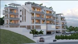 Penthouse apt.no.31 comes with 2 bedrooms, master en-suite (total 2 full bathrooms), 91sq.m net internal covered areas, 16sq.m covered verandas, 8sq.m of uncovered veranda and a very generous 60.5sq.m of private roof garden as well as 2 private storage rooms and a covered parking space. Price : 540000 euro plus VAT.