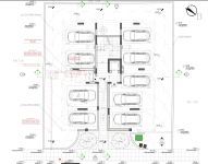 The distance of the building from the borders is great for the smooth movement of cars in and out of the parking lot.