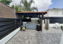 Στην αυλή υπάρχει πισίνα με κάλυμμα, νέα κεραμικά στον περιβάλλοντα χώρο, μπάρμπεκιου με λεκάνη και extractor hood, εξωτερική αποθήκη και άνετος κήπος.