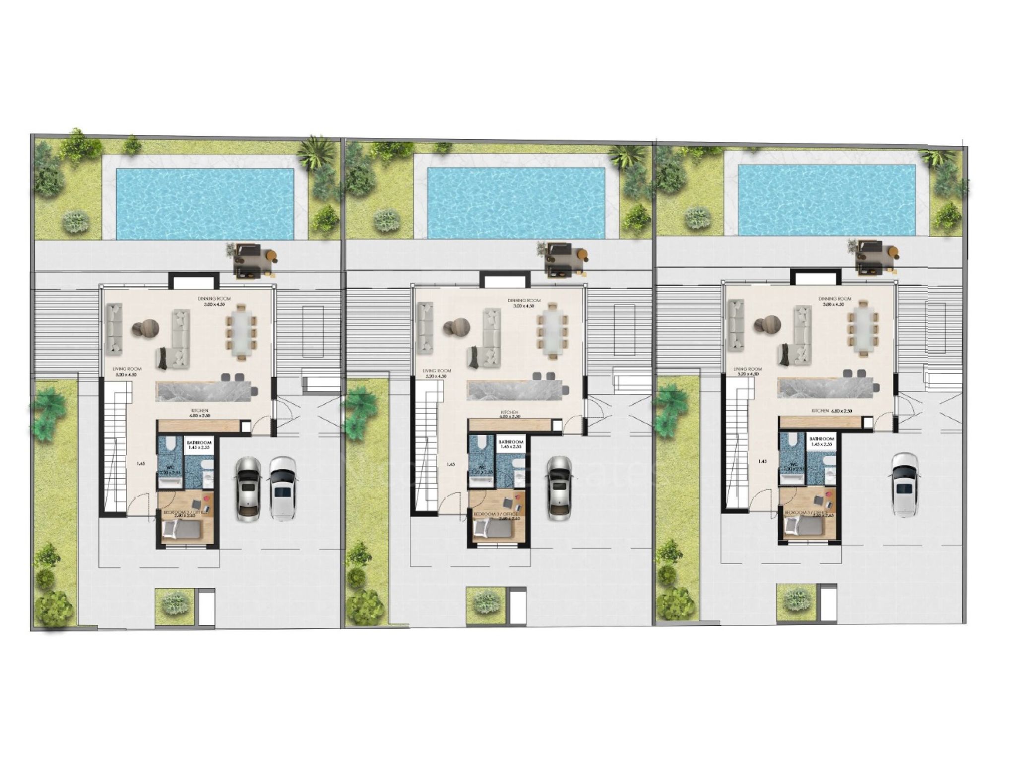 - Spacious private garden for each villa with swimming pool