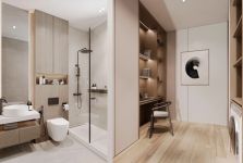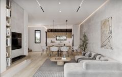 The houses are characterized by comfortable and bright interiors with an open-plan layout, have large comfortable courtyards and covered parking spaces for two cars (side by side). Each house has a living room, dining room, kitchen, storage room and guest toilet on the ground floor. On the first floor are the bedrooms, a shared bathroom and the master bedroom which has en suite and walk in wardrobe.