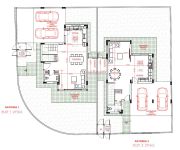 Οικία 1 (354,000.00 συν ΦΠΑ): 271τμ οικόπεδο, 155τμ εσωτερικός χώρος, 16τμ καλυμμένες βεράντες, 134τμ αυλή, 38τμ καλυμμένος χώρος στάθμευσης για 2 αυτοκίνητα και αποθήκη.