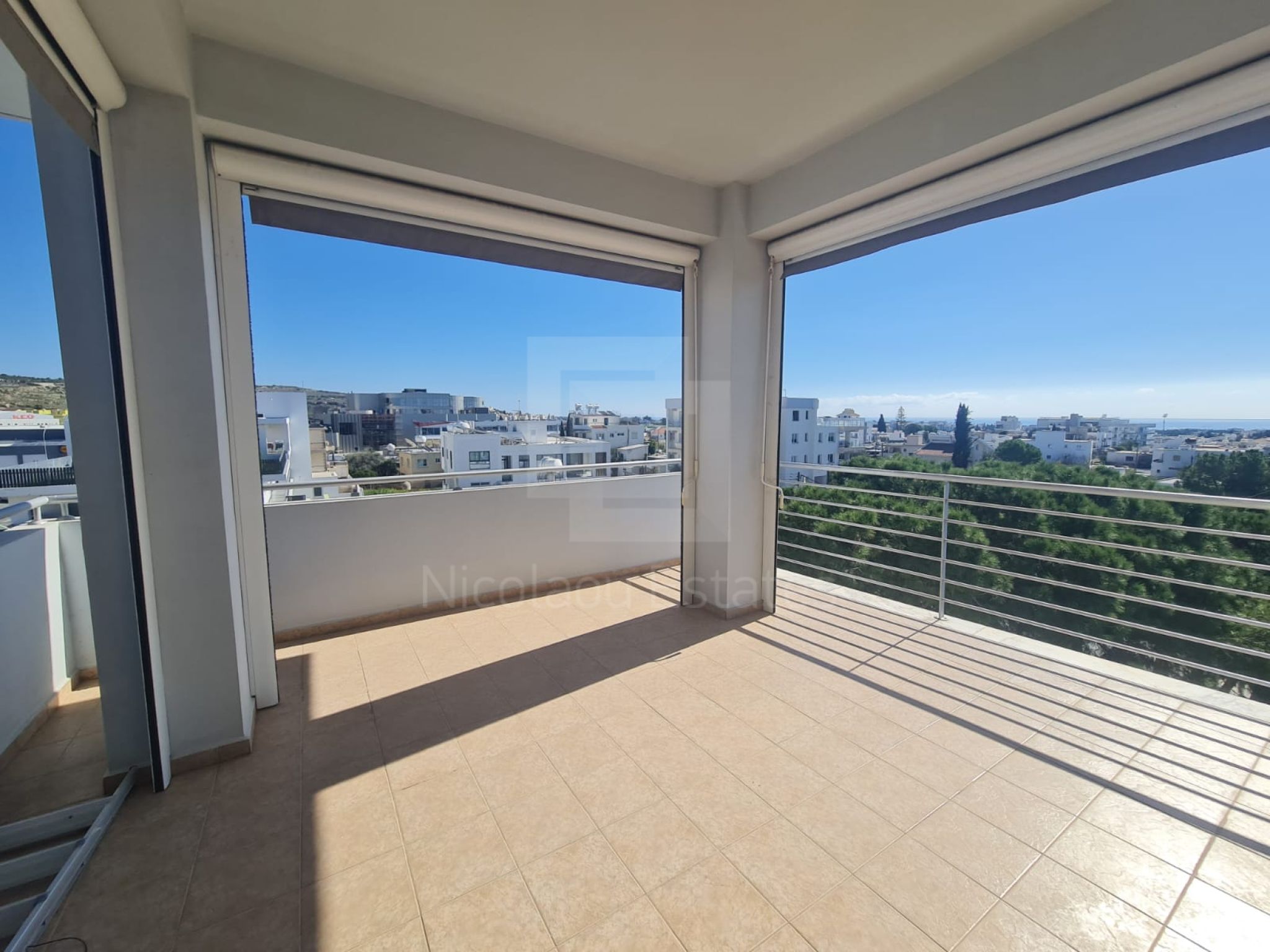 Spacious three bedroom penthouse with panoramic views in Paphos, next to a green area