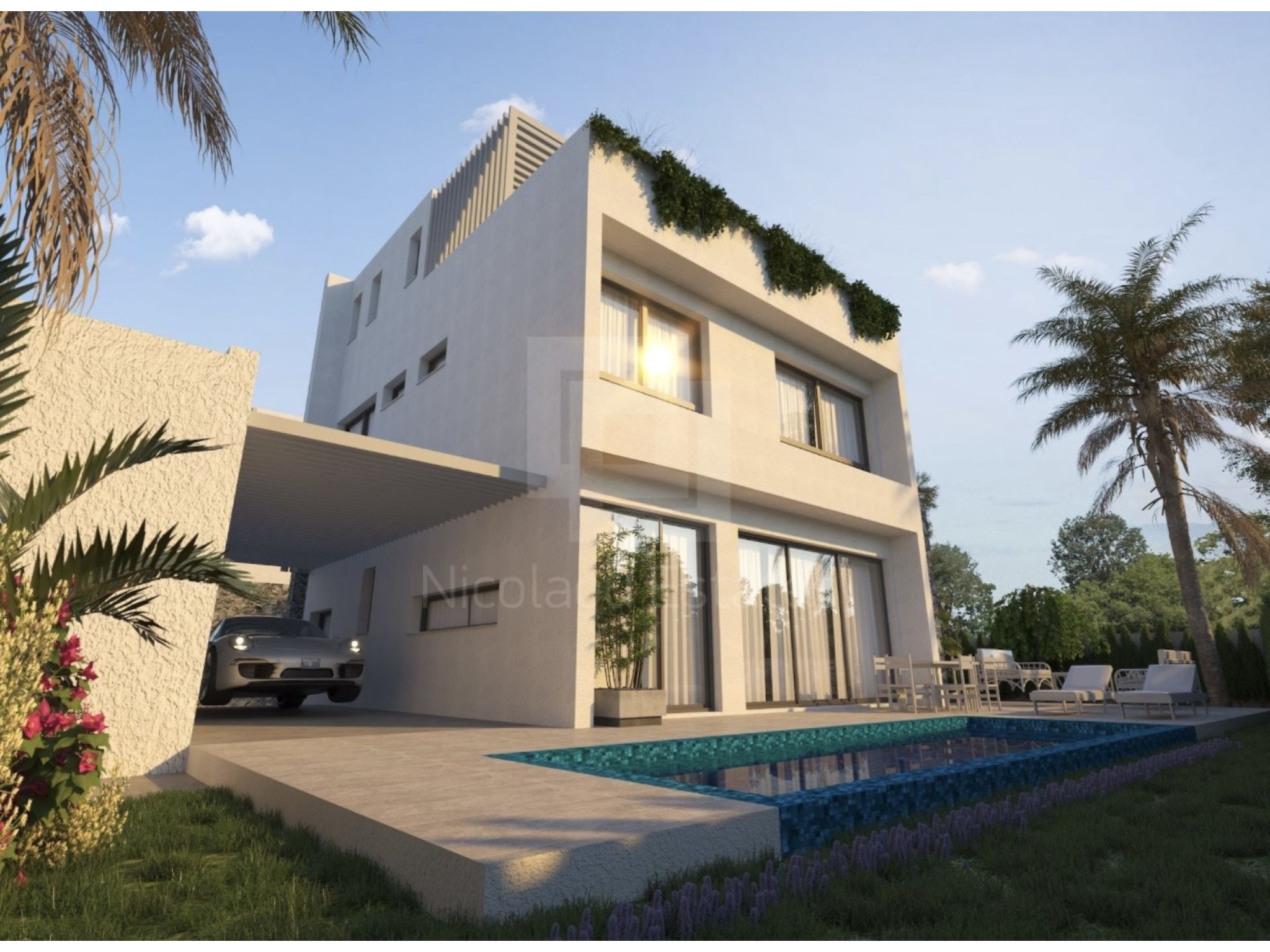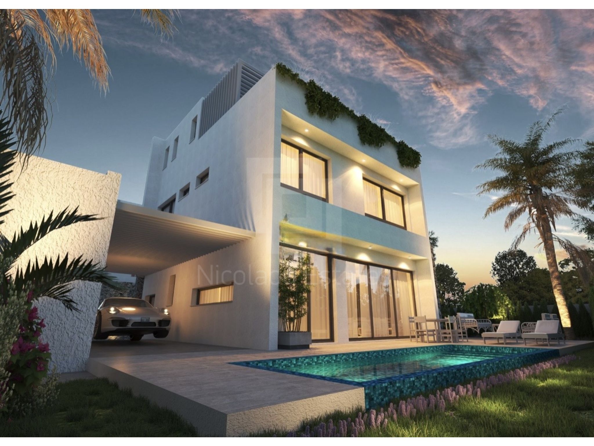 Βίλα 2 (800.000 συν ΦΠΑ): 370 τ.μ. οικόπεδο, 180 τ.μ. εσωτερικός χώρος, 5 υπνοδωμάτια, 5 μπάνια, 50 τ.μ. βεράντες, 55τ.μ. roof garden